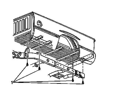 2. Loosely install the pickup box fasteners (1) to the frame rails and tighten the bolts to 85 Nm (63 lb ft).