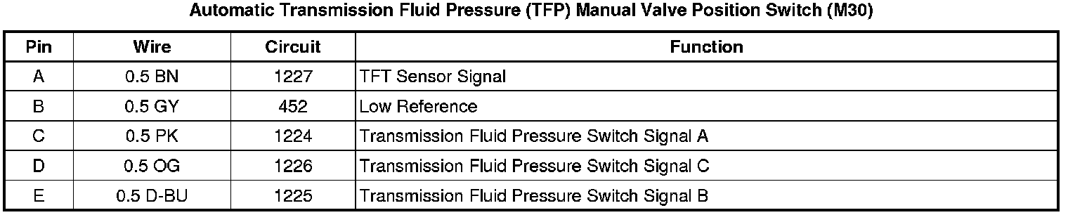 Automatic Transmission Fluid Pressure (TFP) Manual Valve Position Switch (M30)