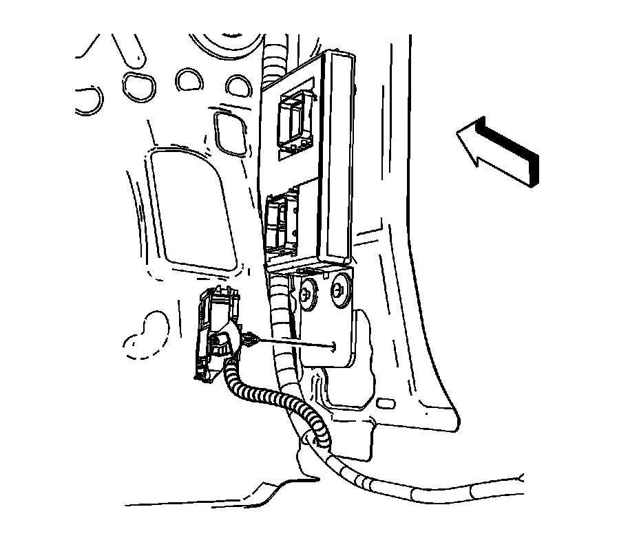 2. Remove the right front hinge pillar trim panel. Refer to Body Hinge Pillar Trim Panel Replacement - Right Side (Service and Repair).