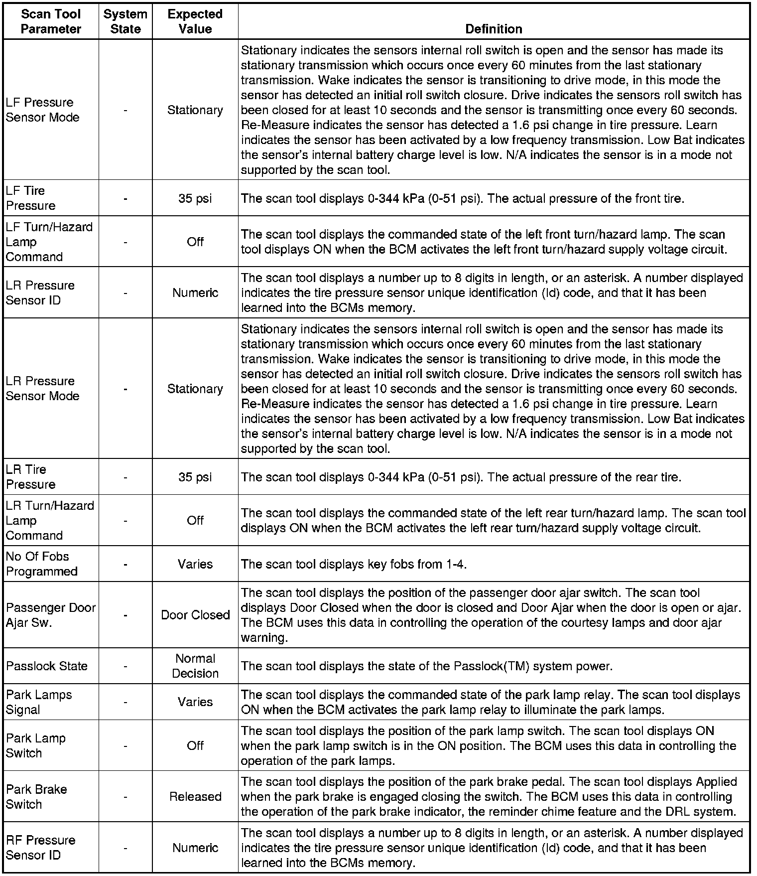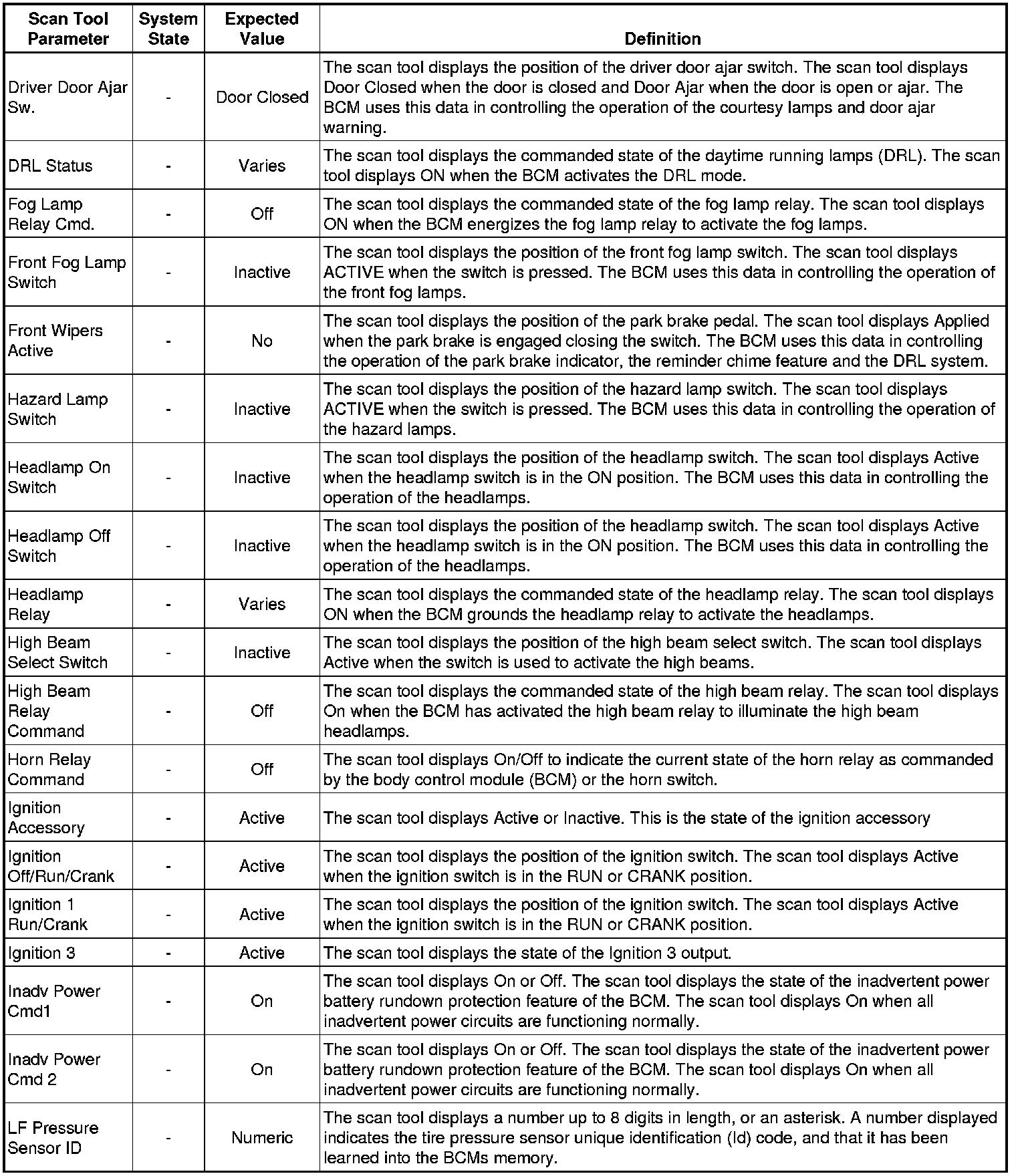 Body Control Module Scan Tool Information