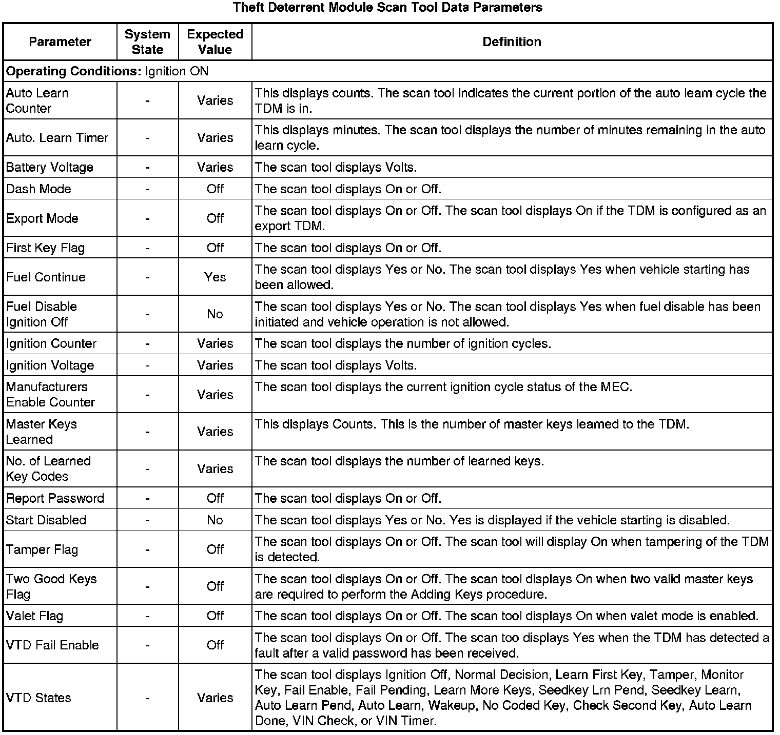 Theft Deterrent Module Scan Tool Information