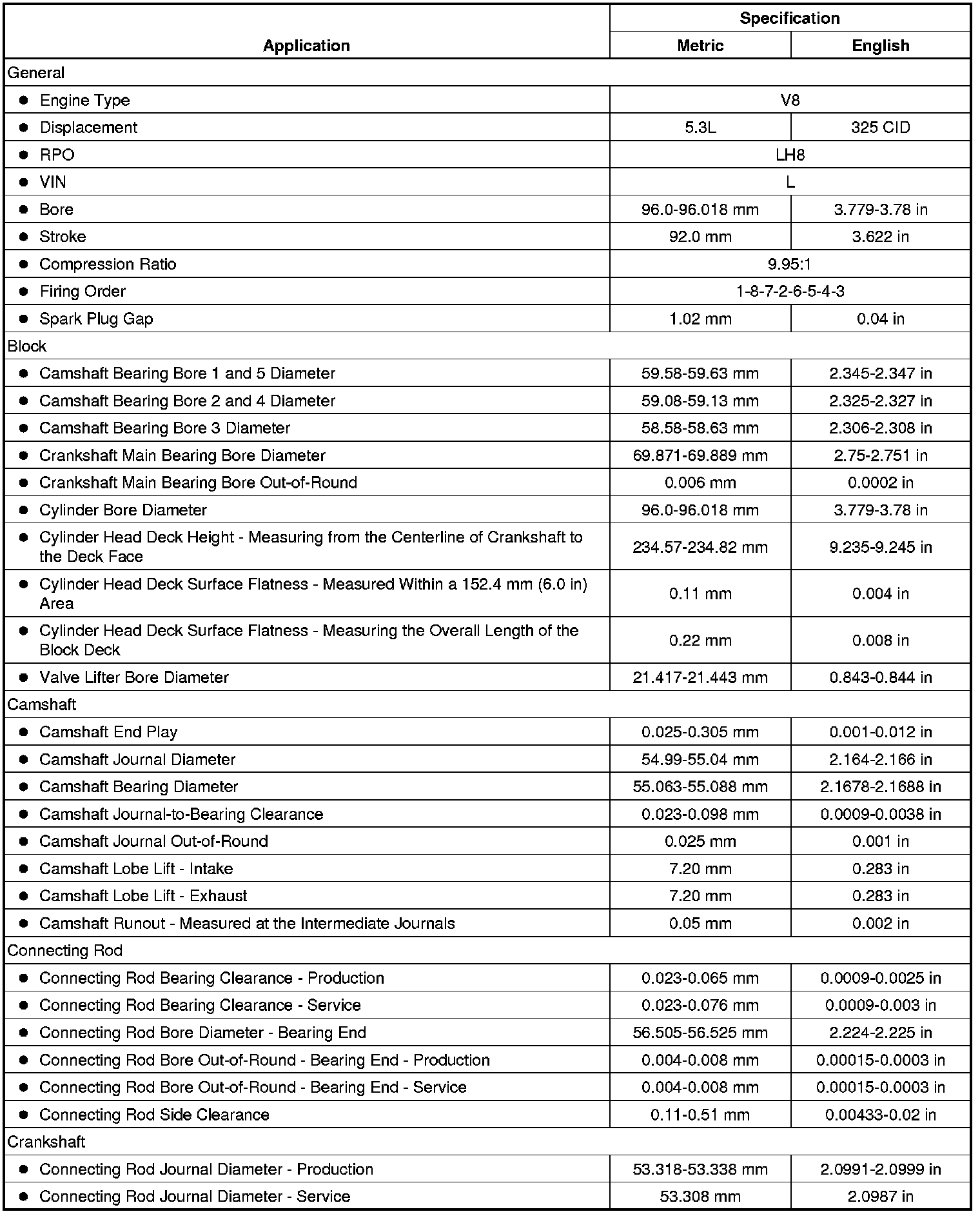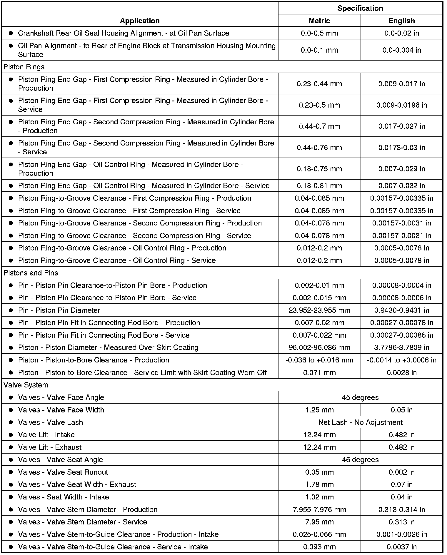Engine Mechanical Specifications