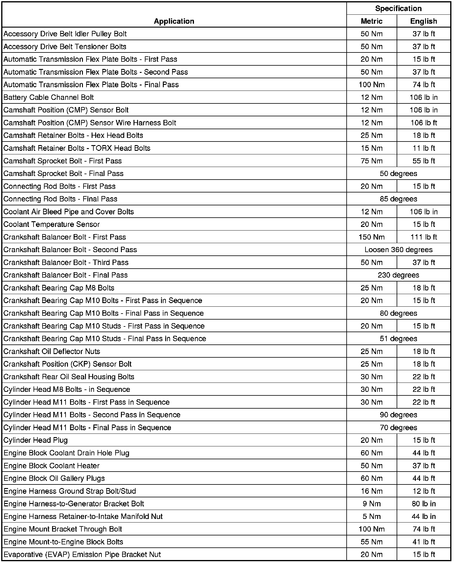 Fastener Tightening Specifications