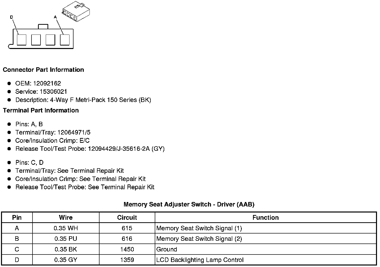 Memory Seat Adjuster Switch - Driver (AAB)