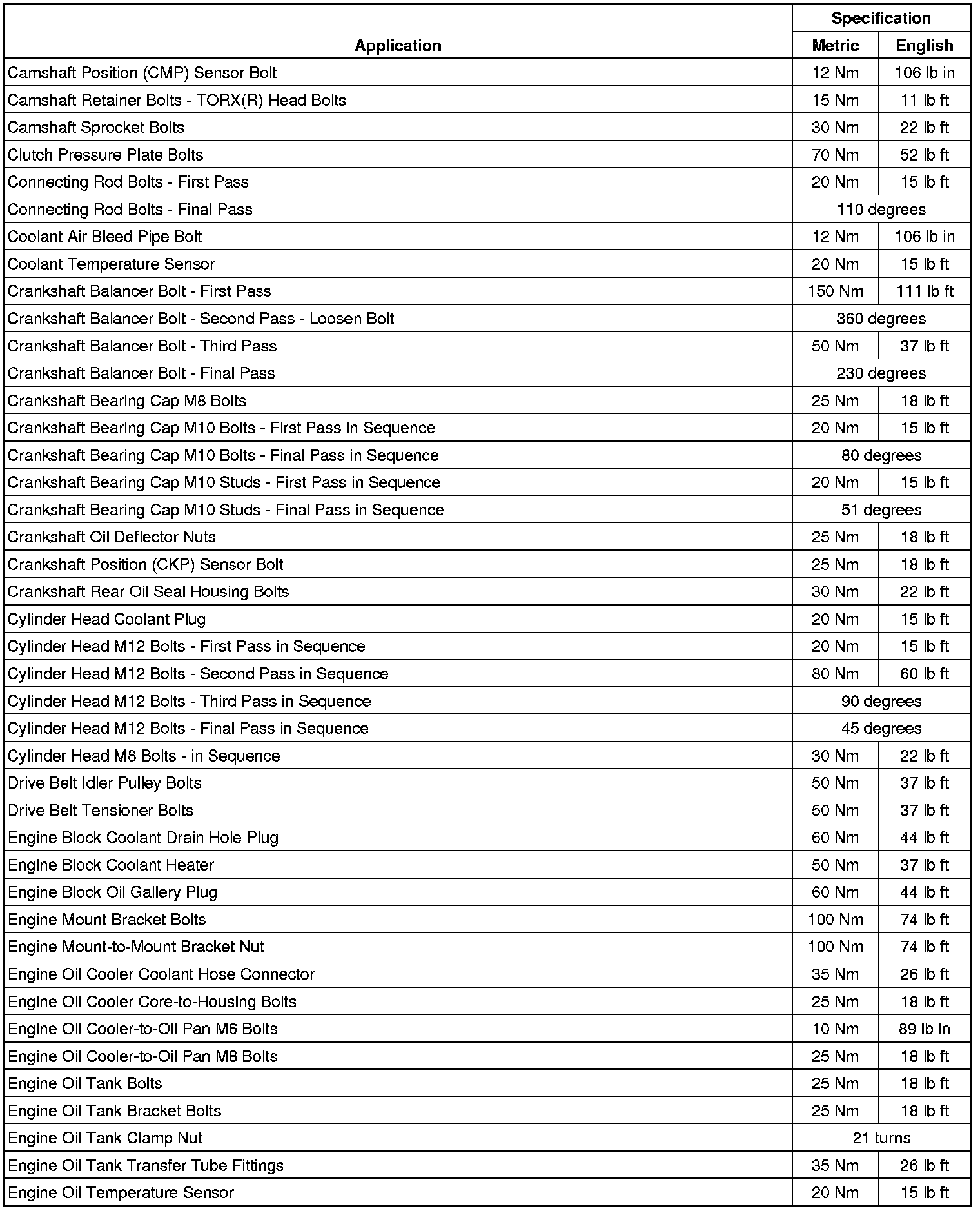 Fastener Tightening Specifications