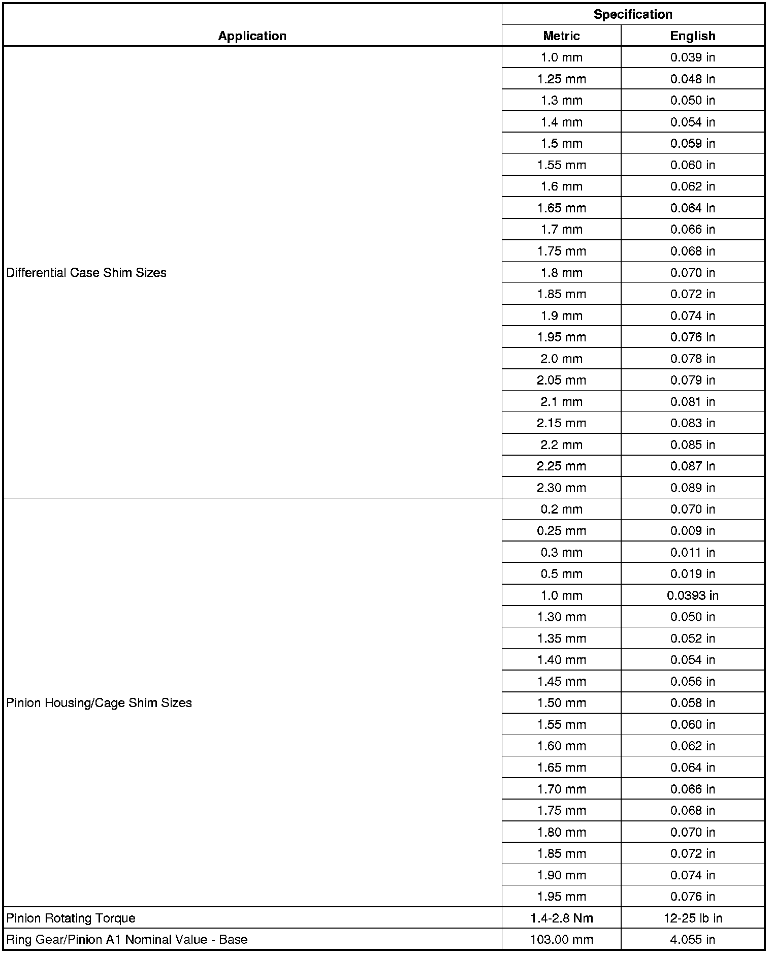 Rear Axle Specifications