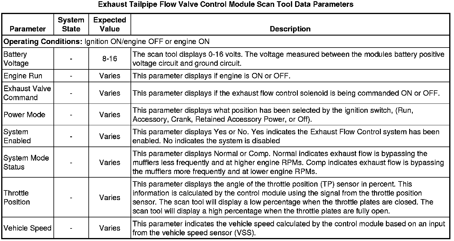 Exhaust Tail Pipe Flow Valve Control Module Scan Tool Information