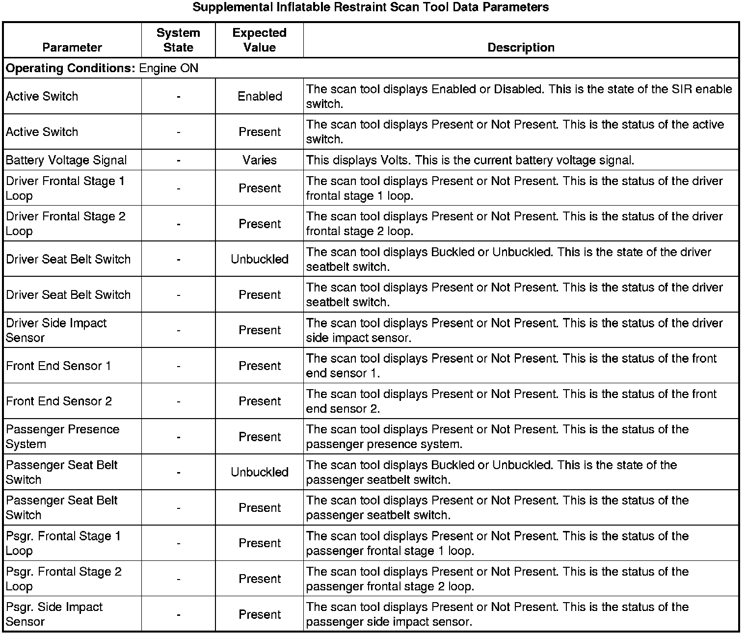 Inflatable Restraint Sensing and Diagnostic Module Scan Tool Information