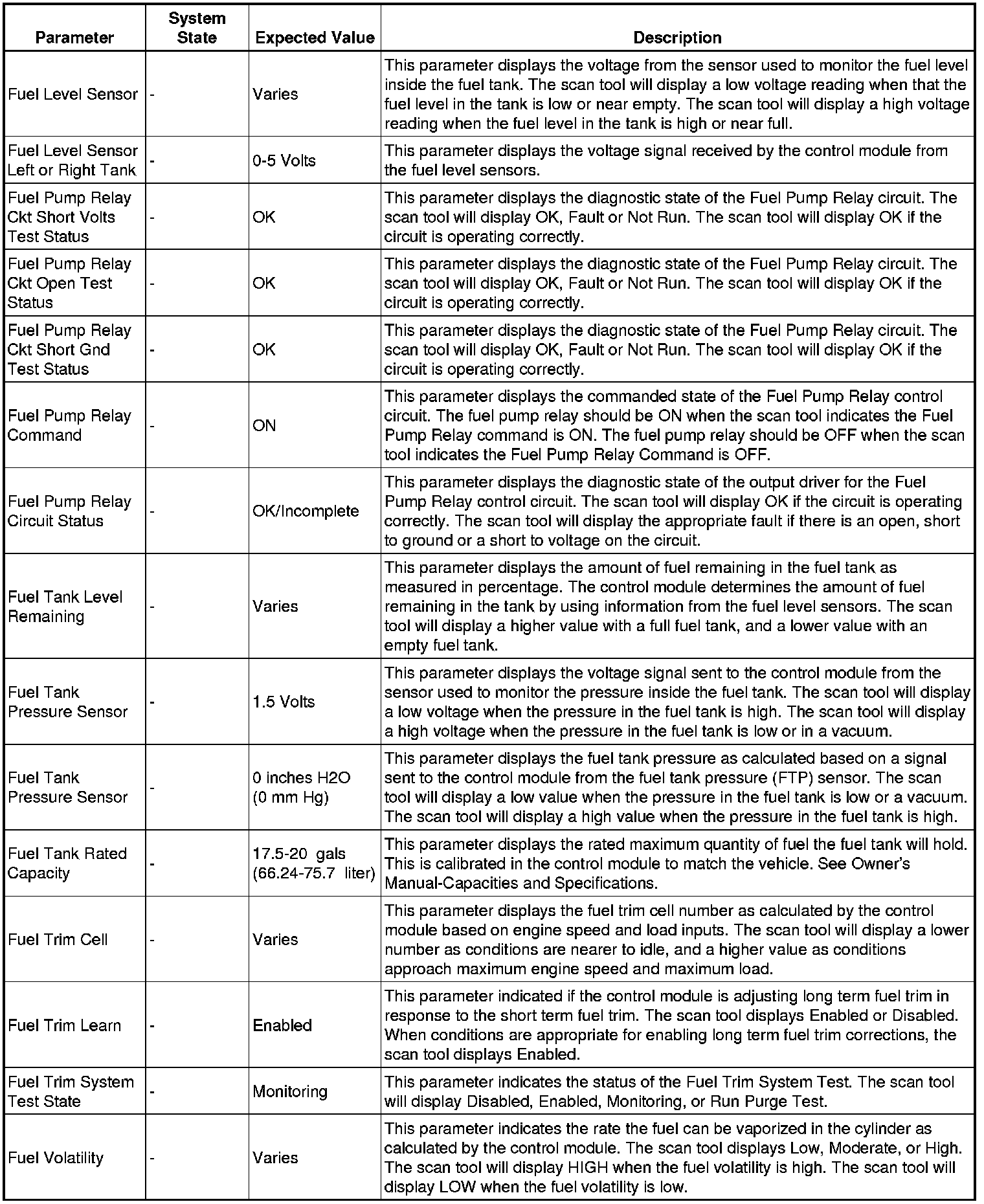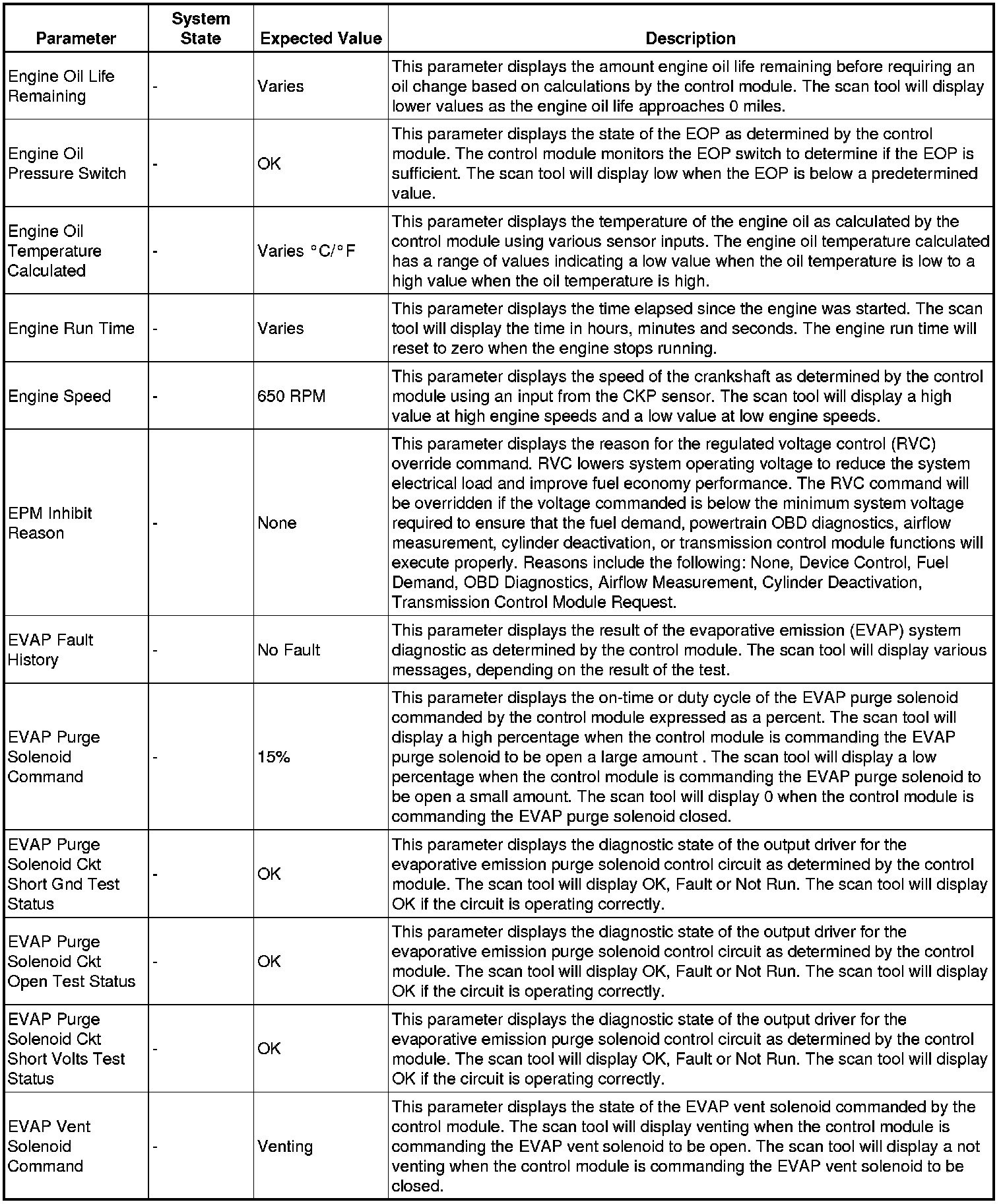 The scan tool values from a properly running engine may be used for comparison with the engine you are diagnosing. The engine scan tool data list represents values that would be seen on a normally running engine.