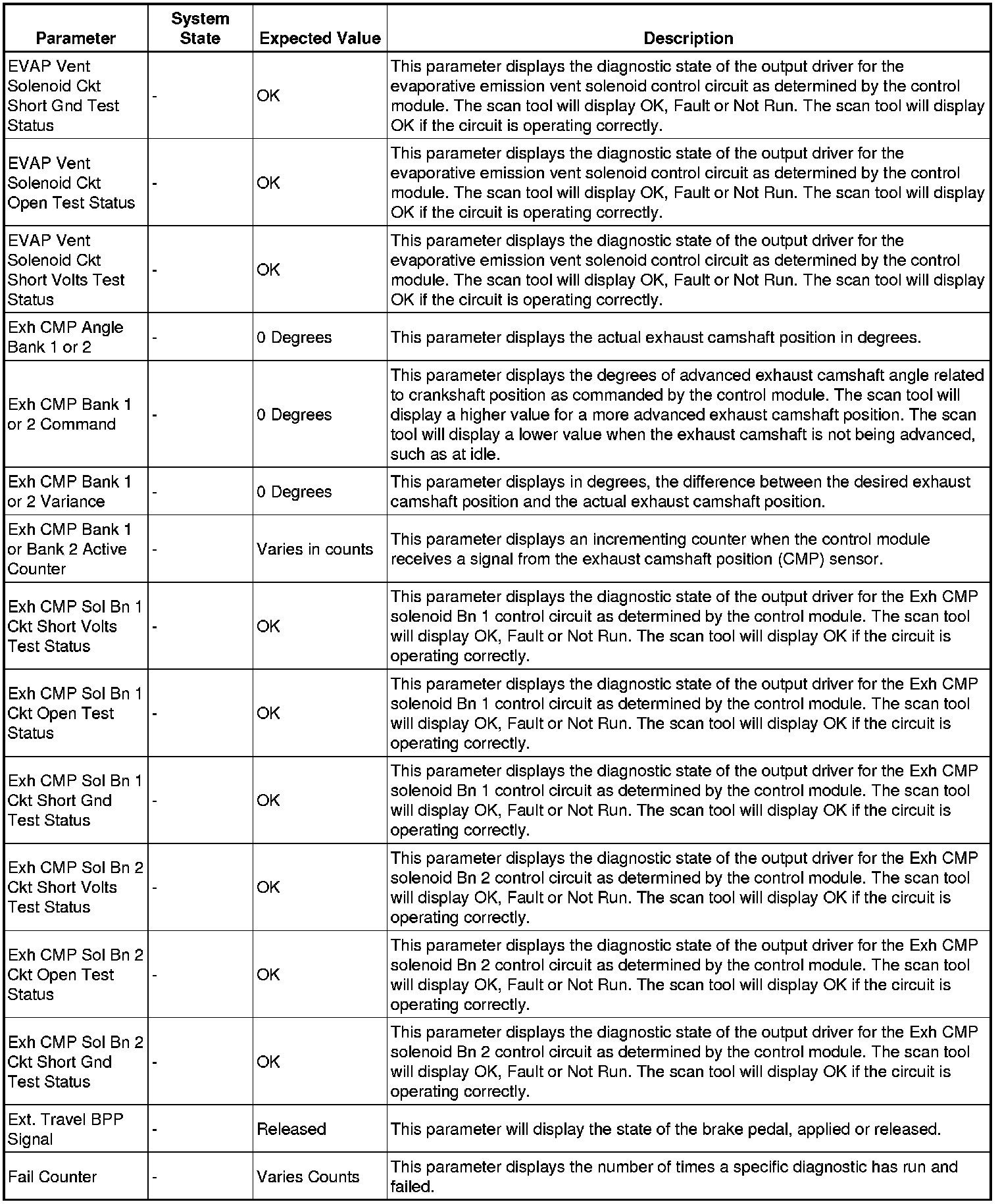 The Engine Control Module Scan Tool Data List contains all engine-related parameters that are available on the scan tool. The list is arranged in alphabetical order. A given parameter may appear in any one of the data lists, and in some cases may appear more than once, or in more than one data list in order to group certain related parameters together.