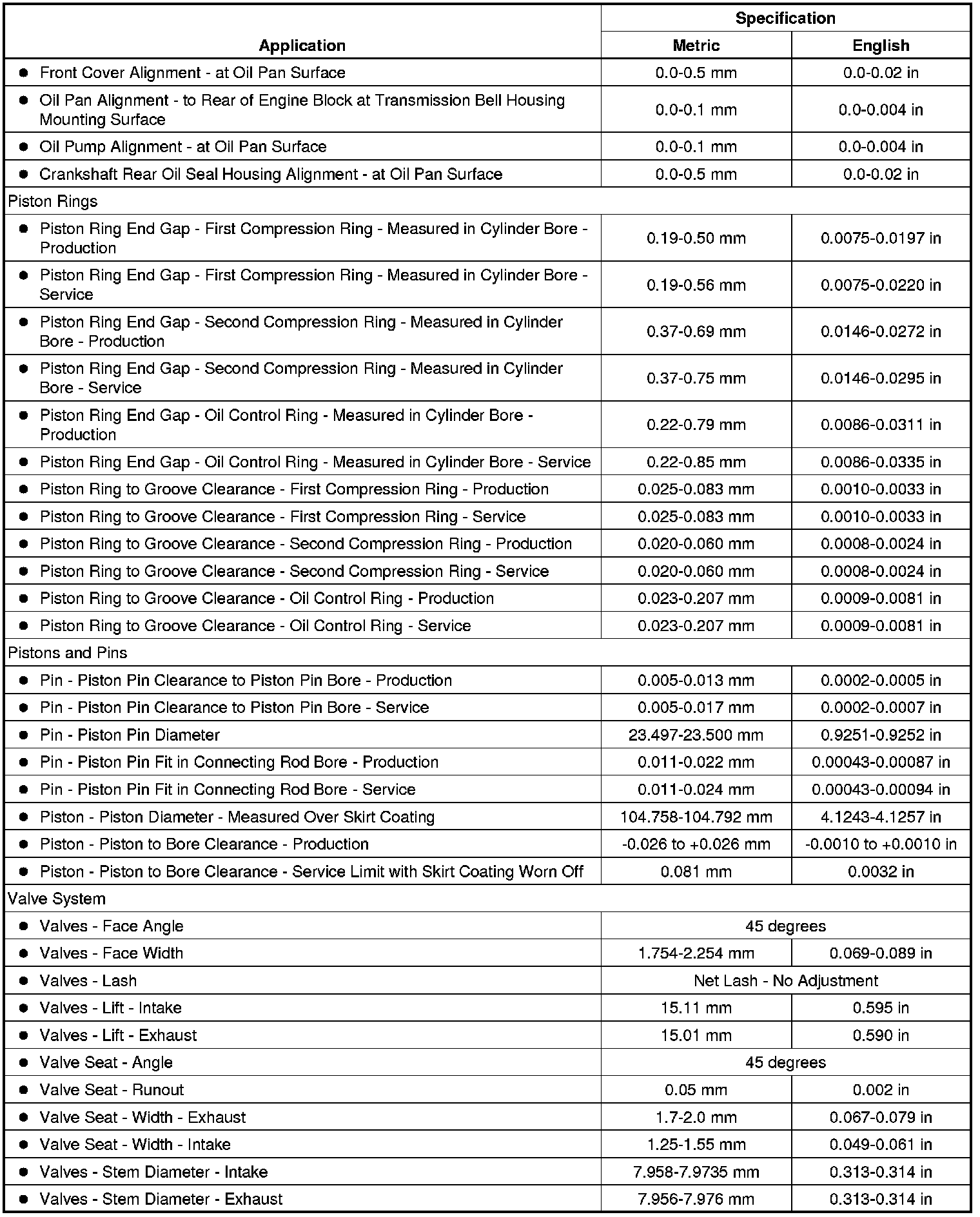 Engine General Specifications & Service Limits