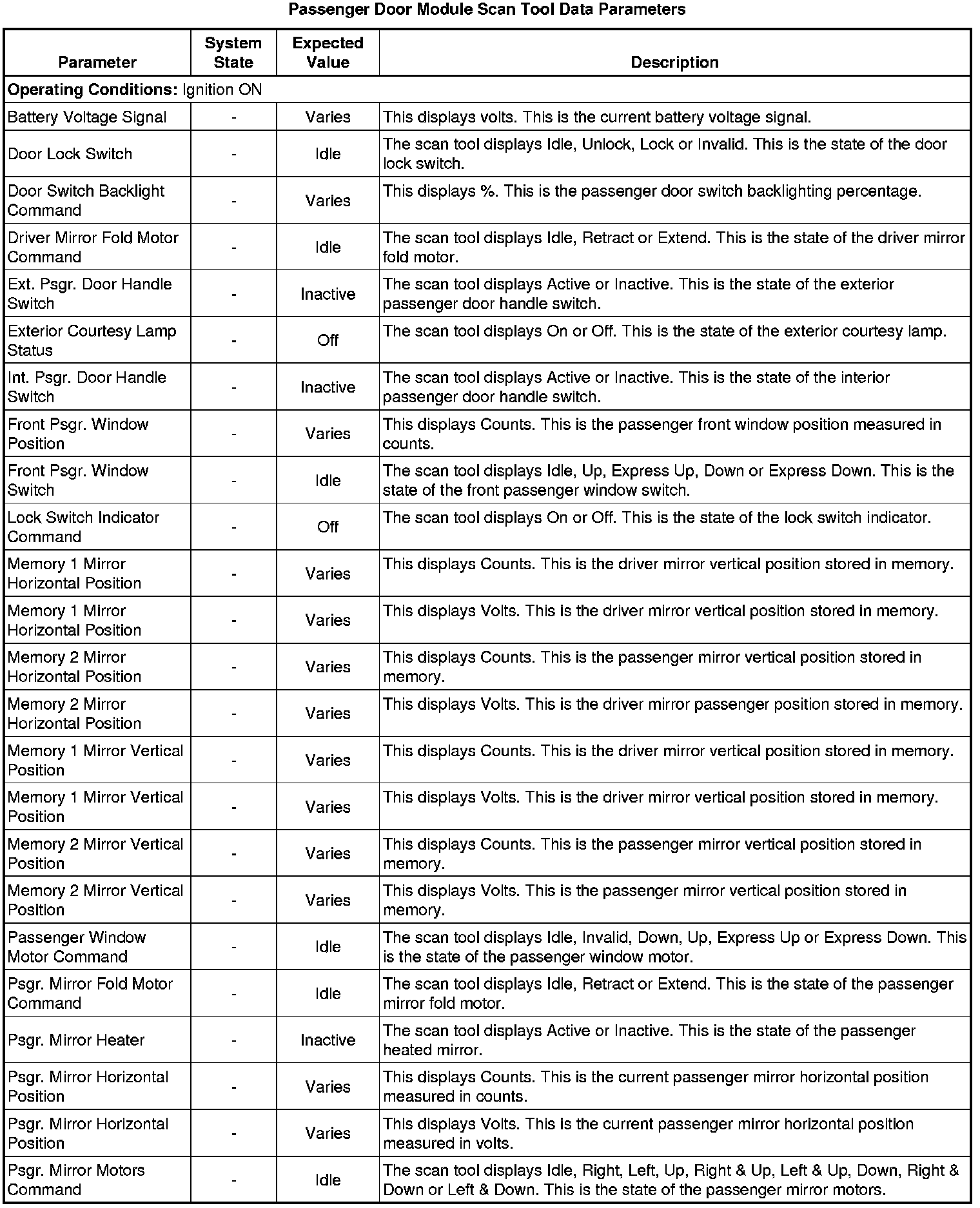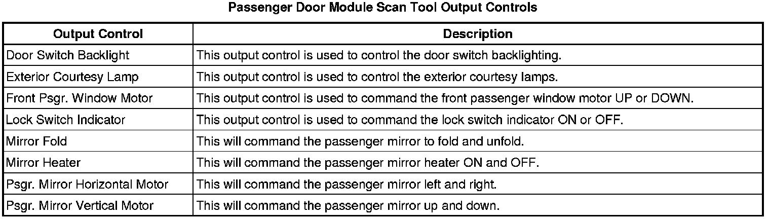 Door Lock Control Module Scan Tool Information (Passenger