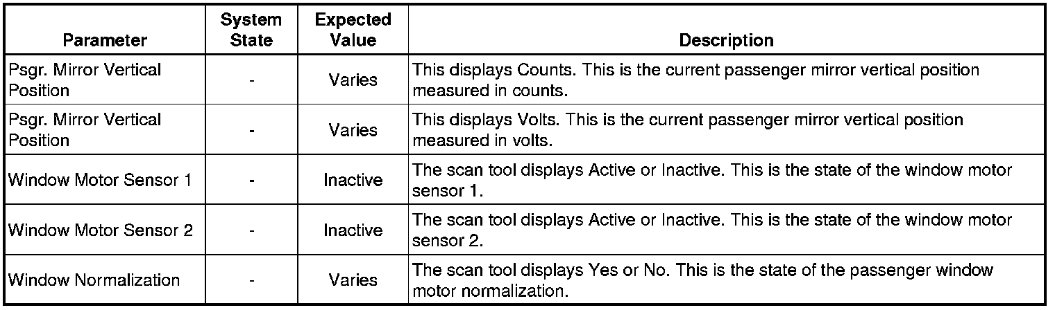 Door Lock Control Module Scan Tool Information (Passenger Door Module)