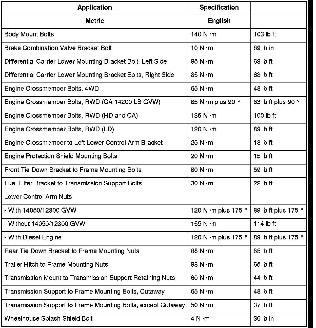 Fastener Tightening Specifications