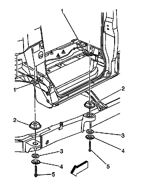 4.Install the body mount bolts (5) and tighten to140 N �m (103 lb ft).