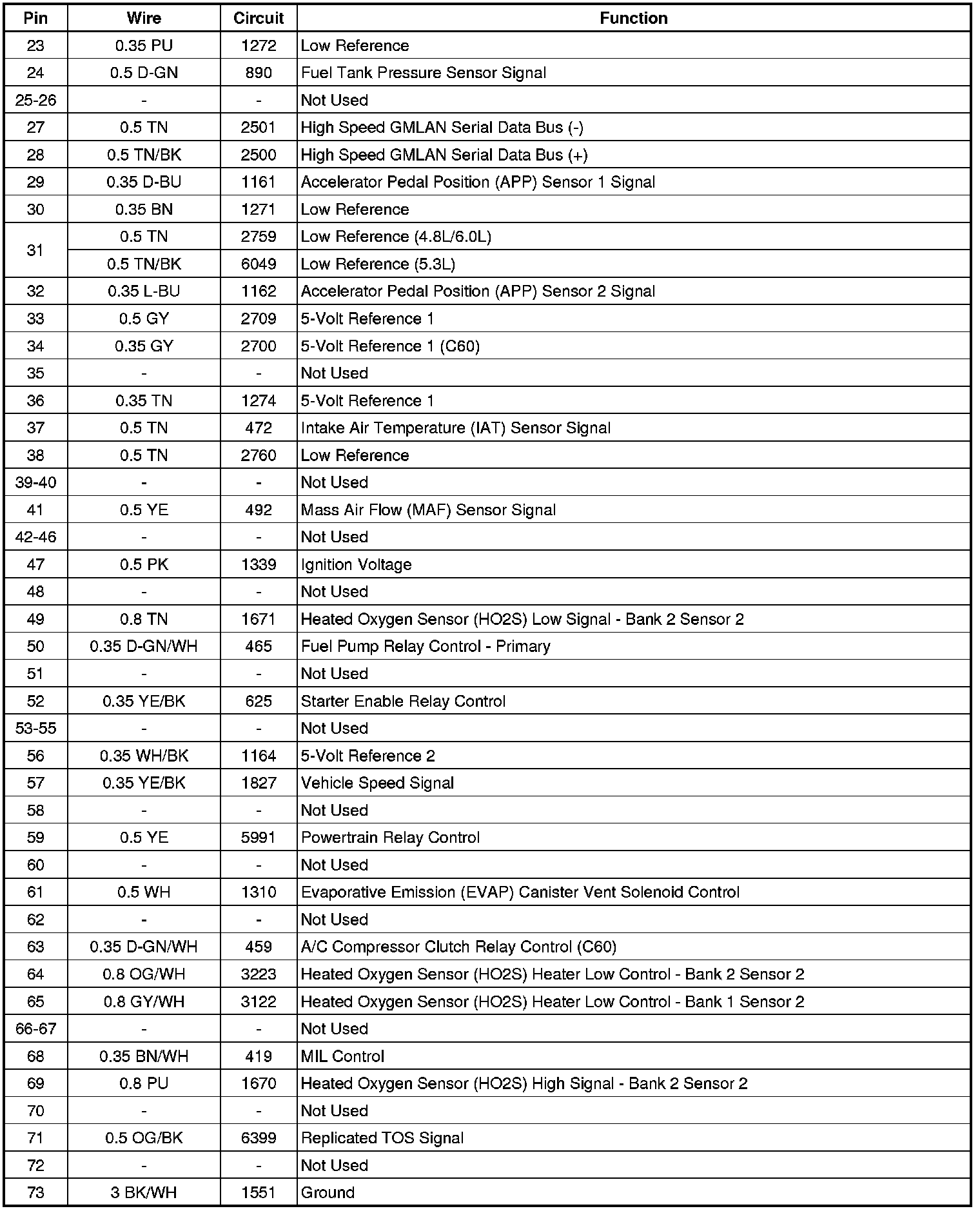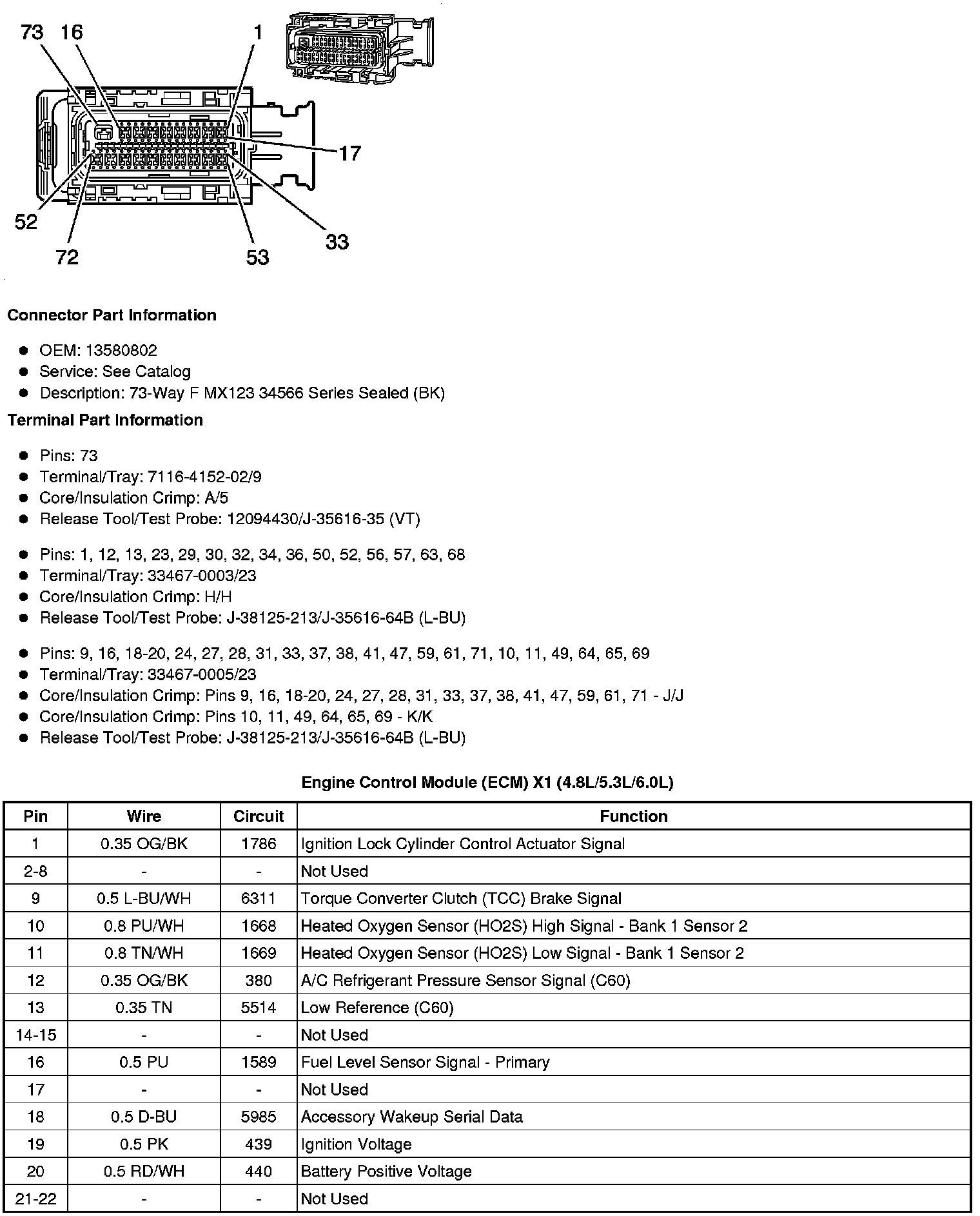Engine Control Module (ECM) X1 (4.8L/5.3L/6.0L)