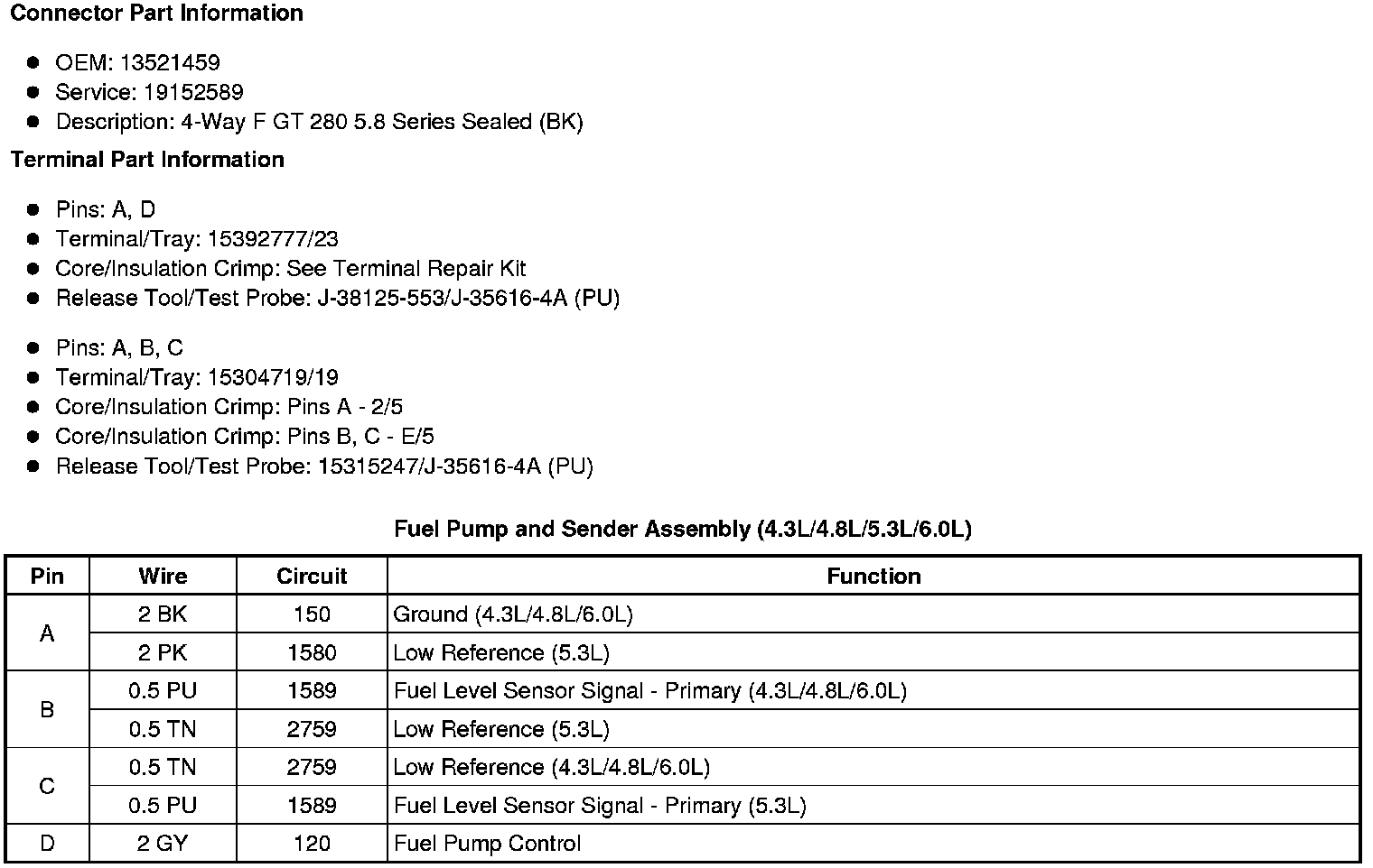 Fuel Pump and Sender Assembly (4.3L/4.8L/5.3L/6.0L)