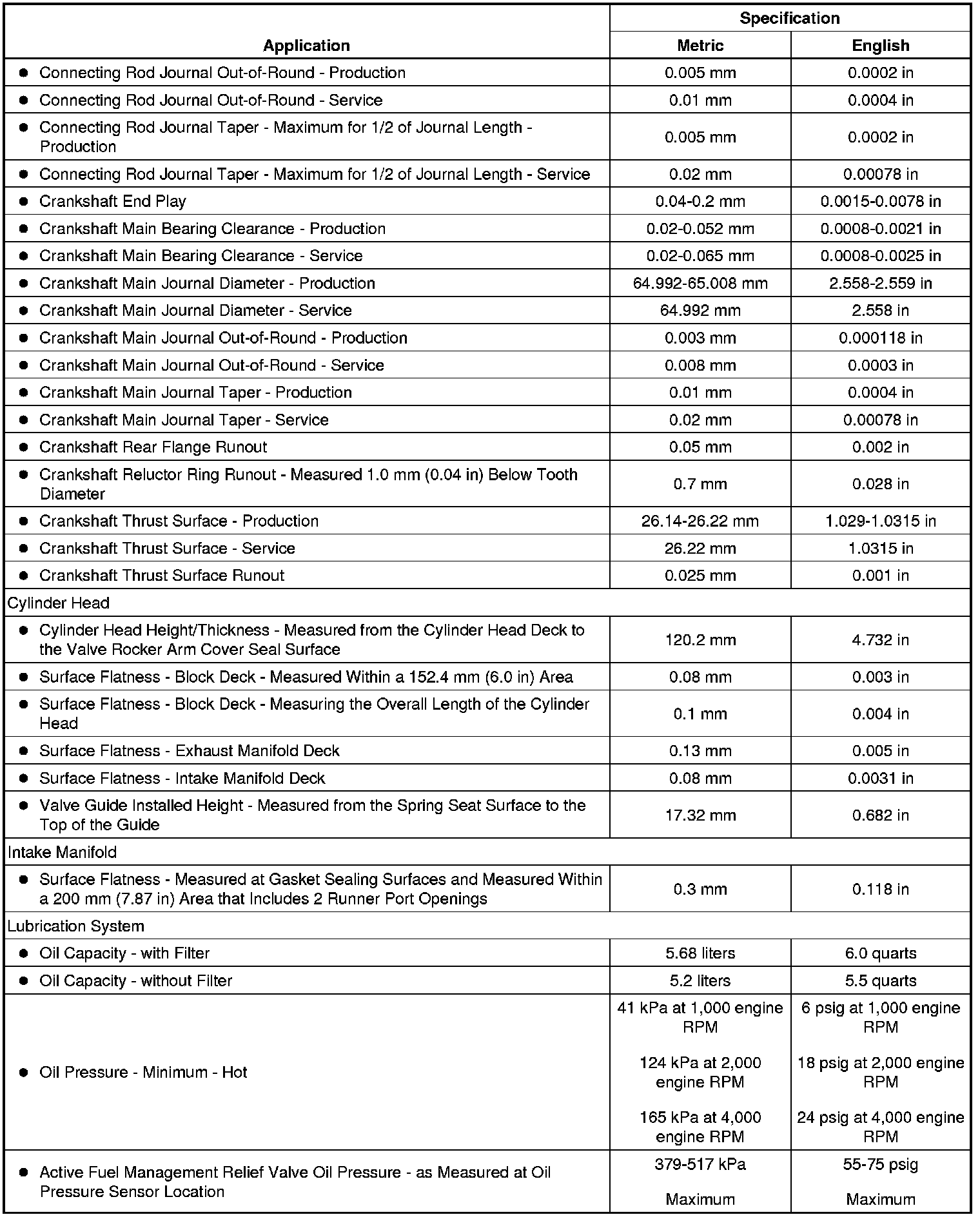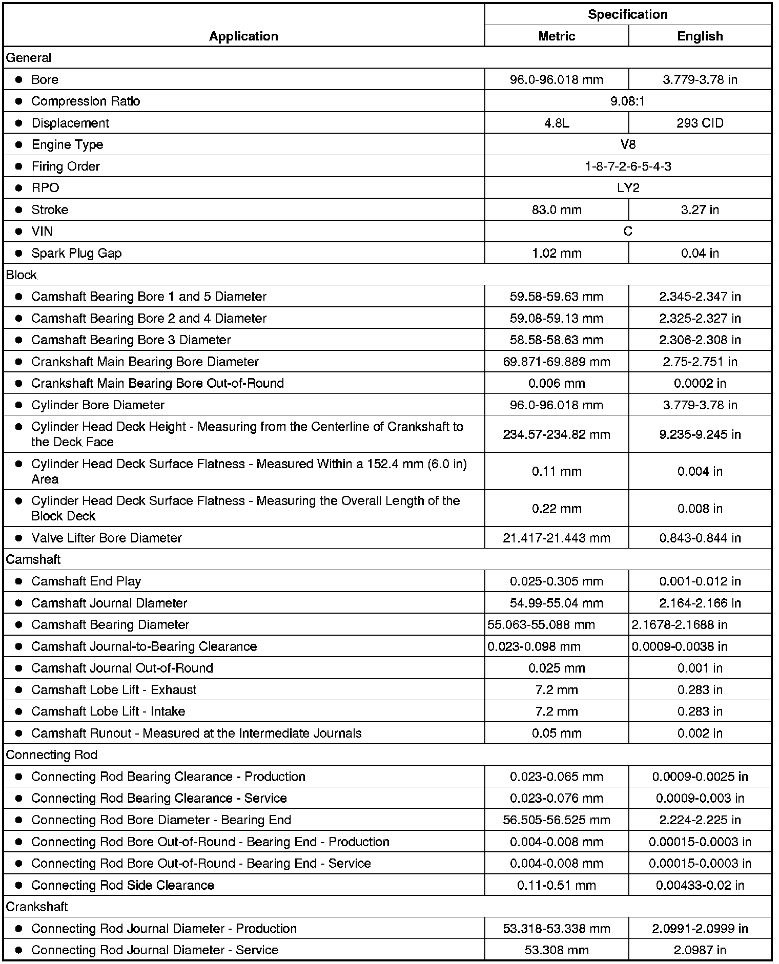 Engine Mechanical Specifications (RPO LY2 VIN C) (4.8L)