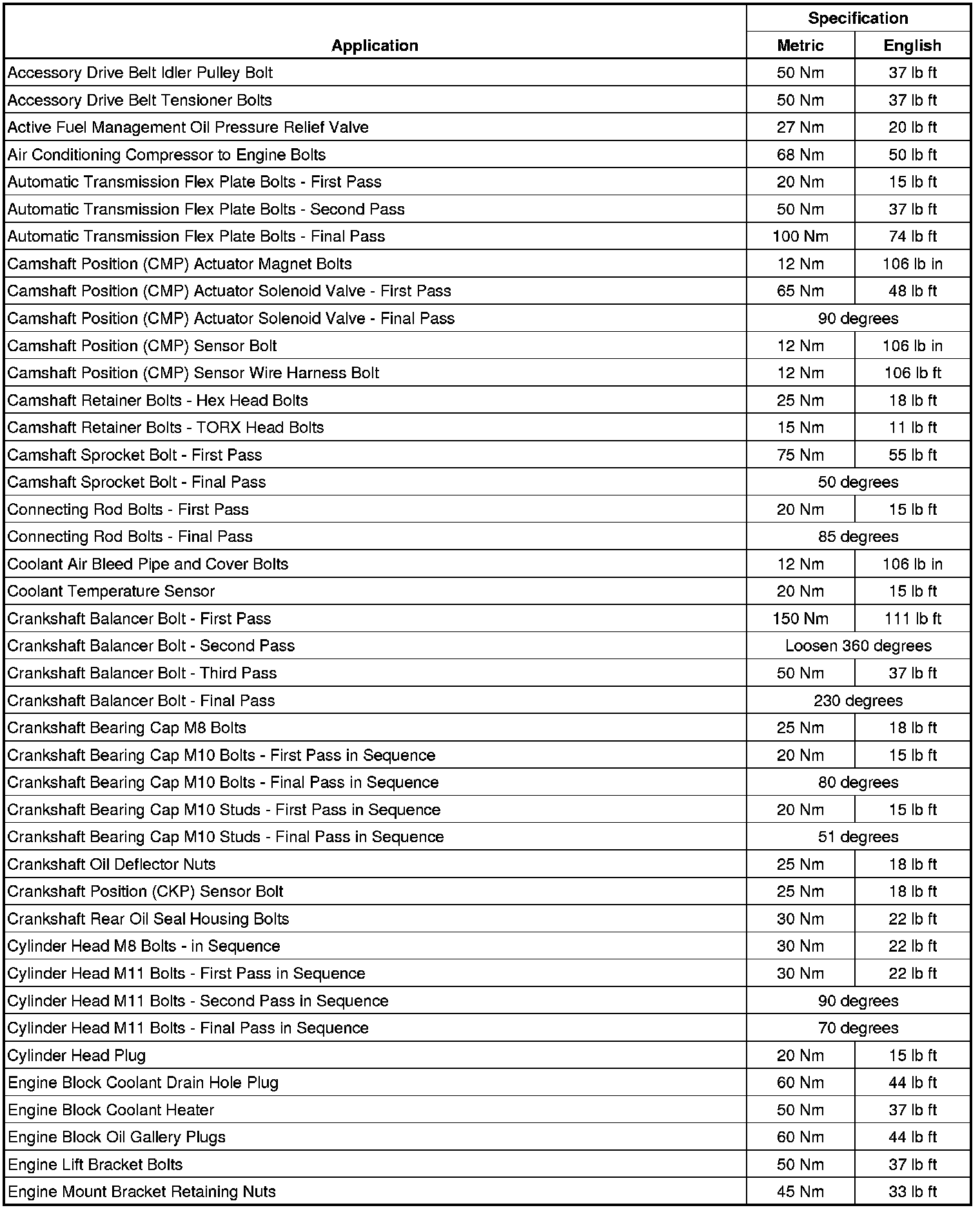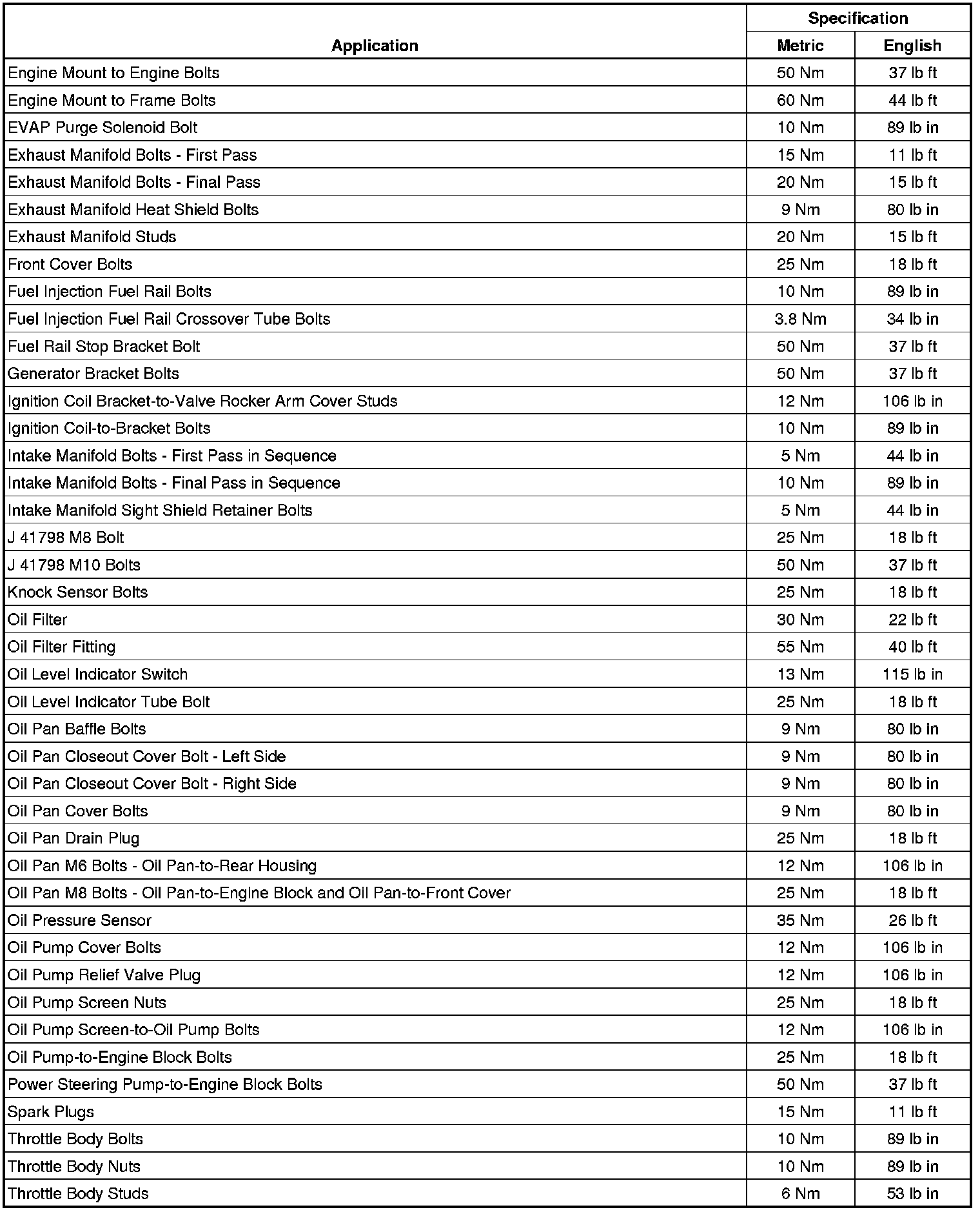 Fastener Tightening Specifications