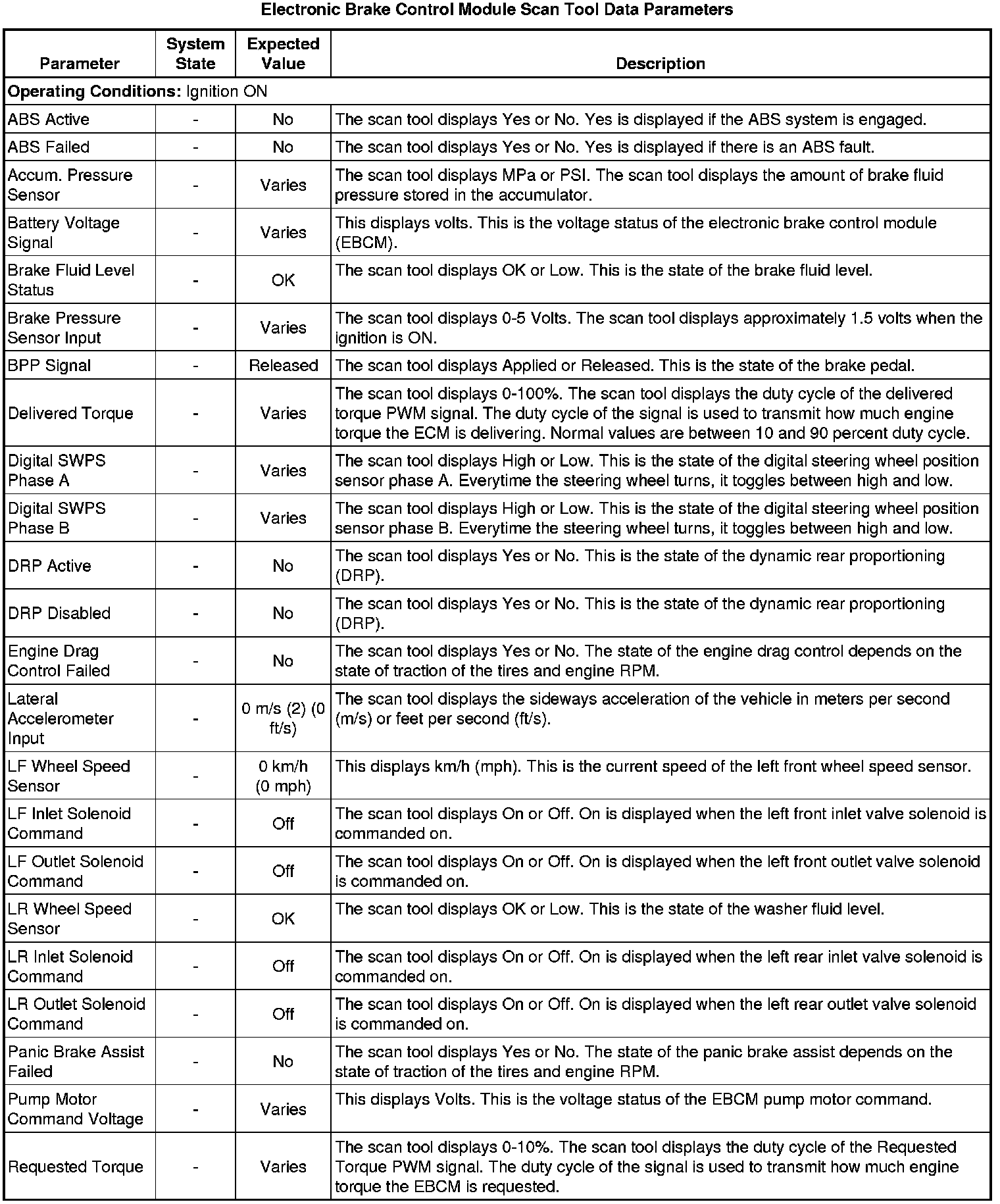 Electronic Brake Control Module Scan Tool Information