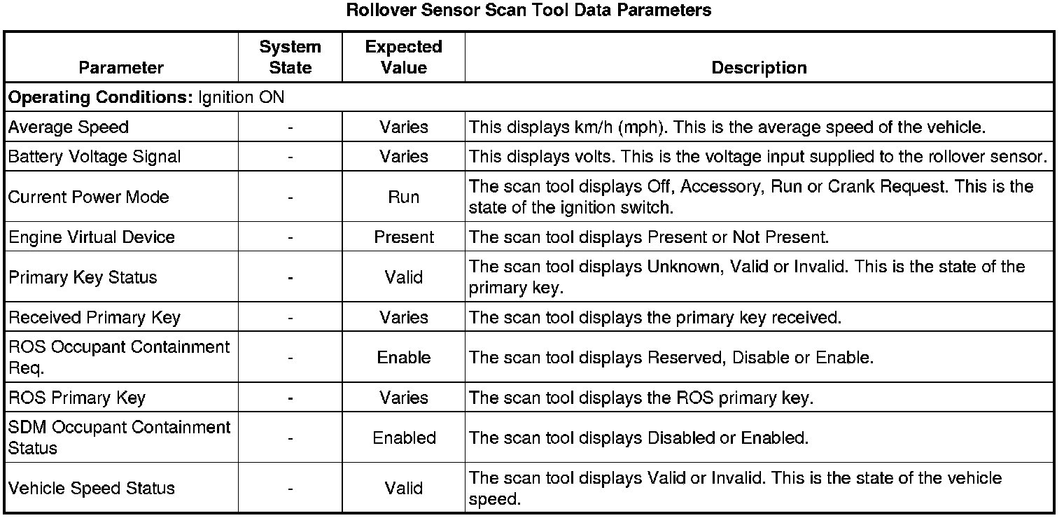 Inflatable Restraint Vehicle Rollover Sensor Scan Tool Information