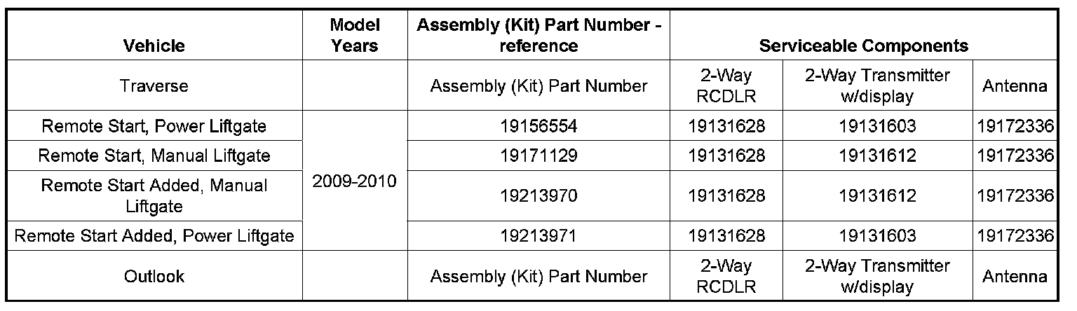 This bulletin is being published to provide information on locating service part numbers for GM Accessory, 2-Way Advanced Remote Start Systems.