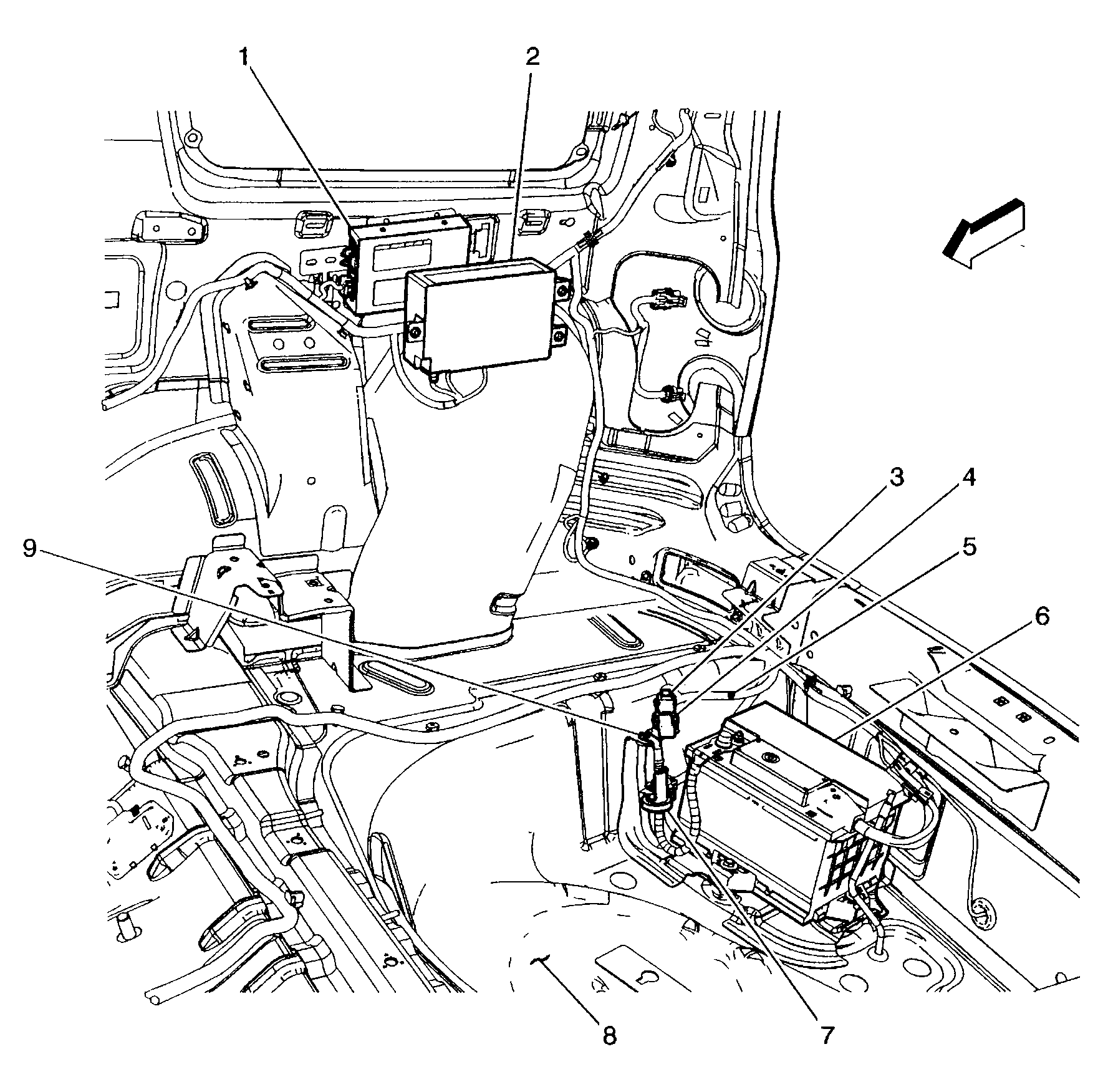 | BCM Fuseholder (3) | In rear compartment of vehicle, near battery. See Figure. |
