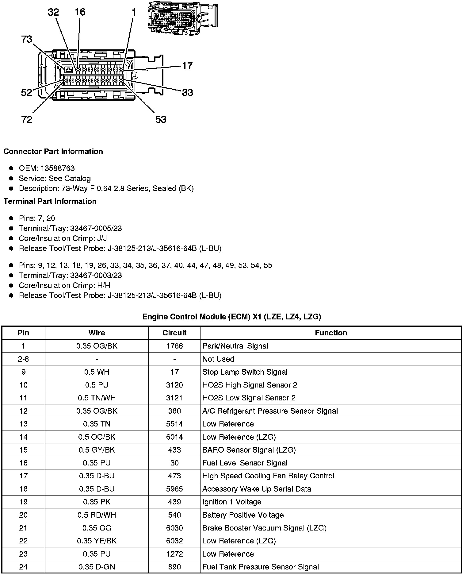 Engine Control Module (ECM) X1 (LZE-3.5L Flex Fuel, LZ4-3.5L Gas, LZG-3.9L Flex Fuel)
