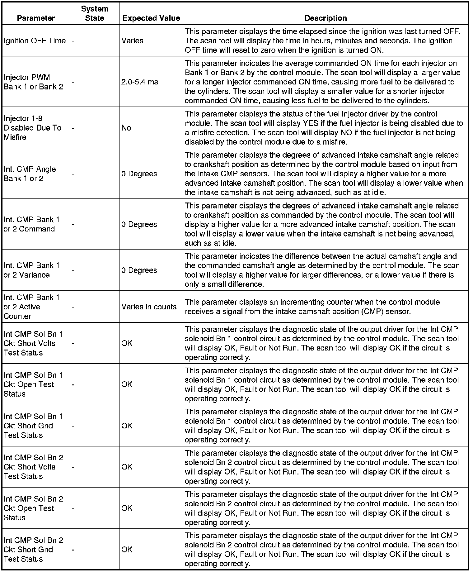 The Engine Control Module Scan Tool Data List contains all engine-related parameters that are available on the scan tool. The list is arranged in alphabetical order. A given parameter may appear in any one of the data lists, and in some cases may appear more than once, or in more than one data list in order to group certain related parameters together.