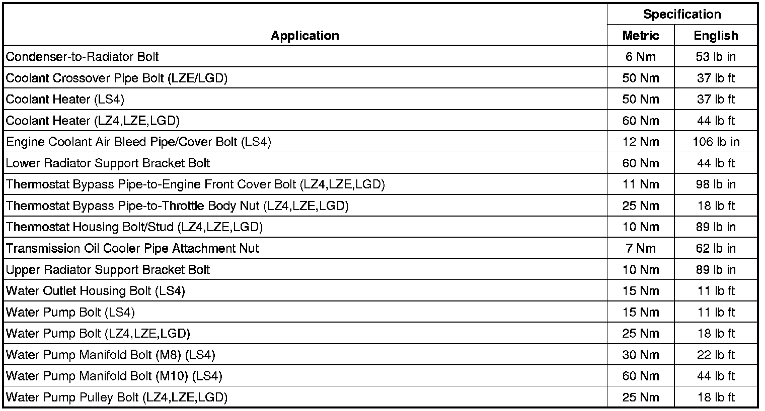 Fastener Tightening Specifications