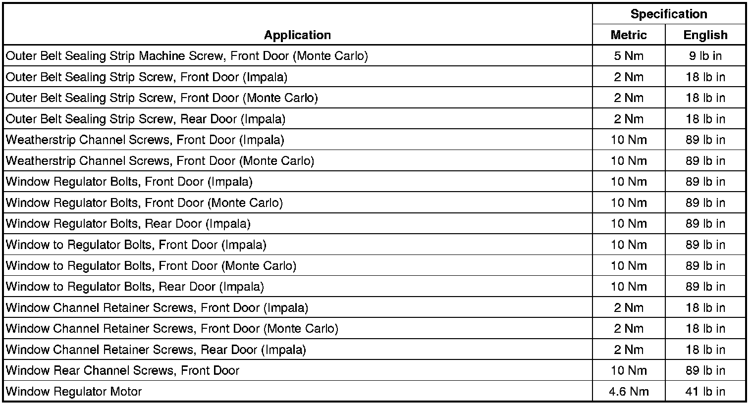 Fastener Tightening Specifications