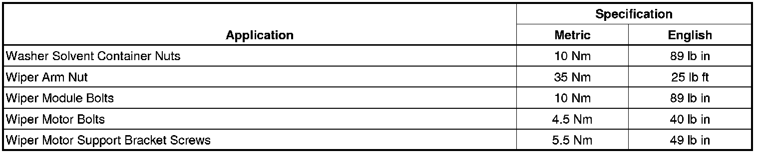 Wiper and Washer Systems: Specifications