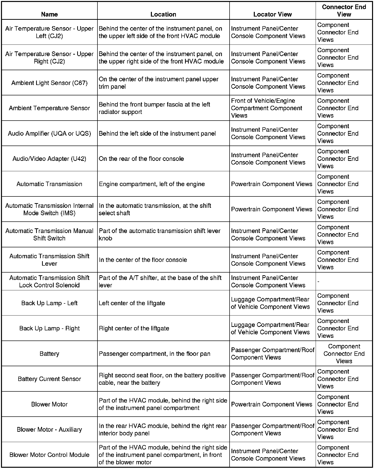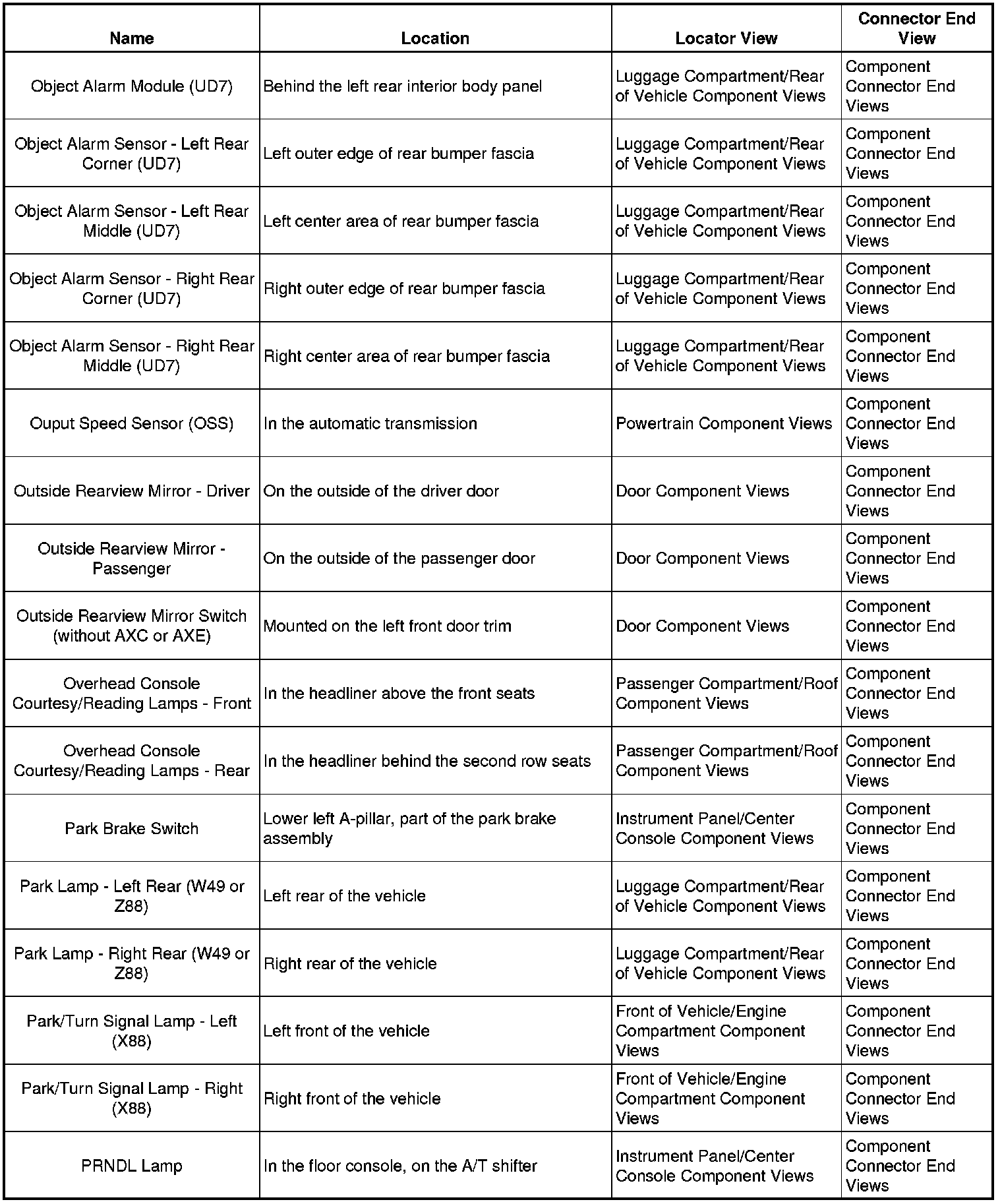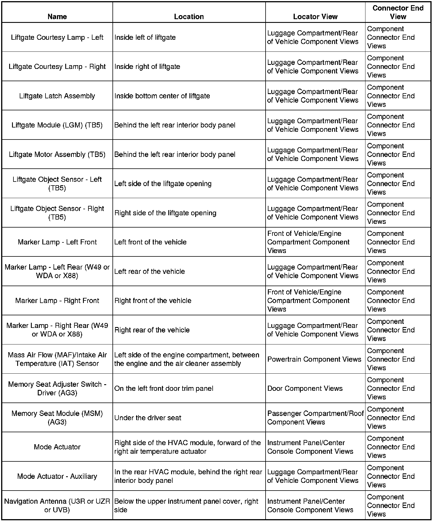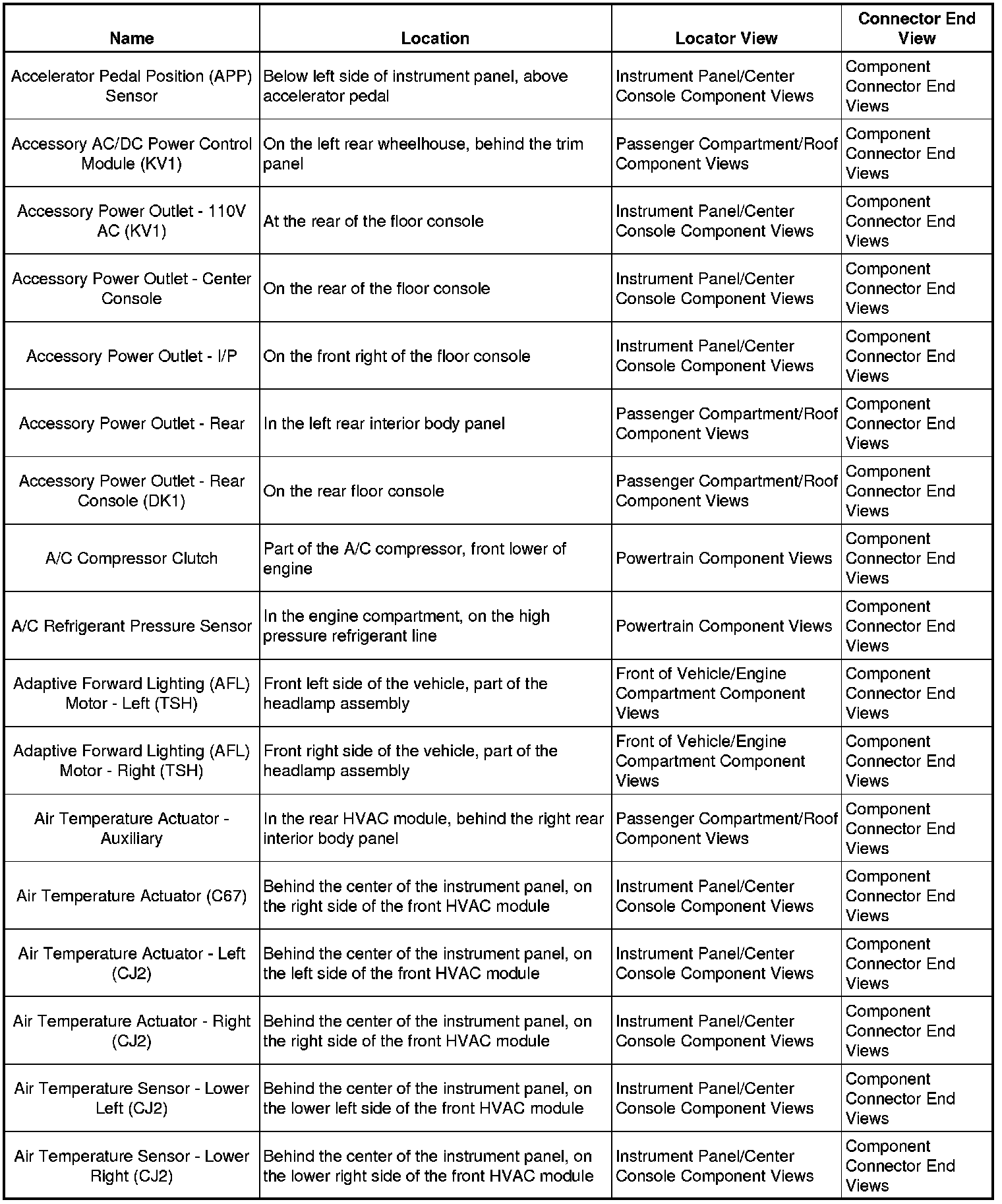 Master Electrical Component List