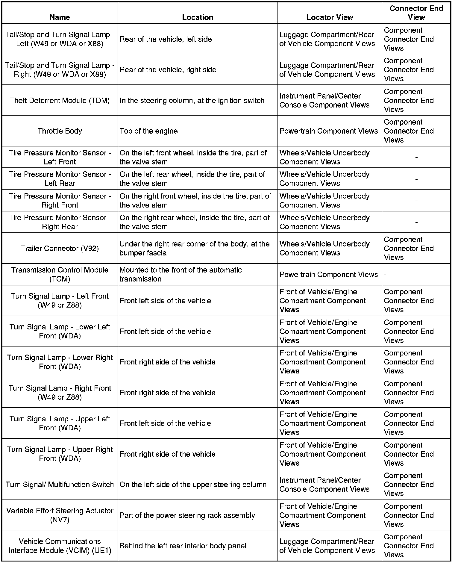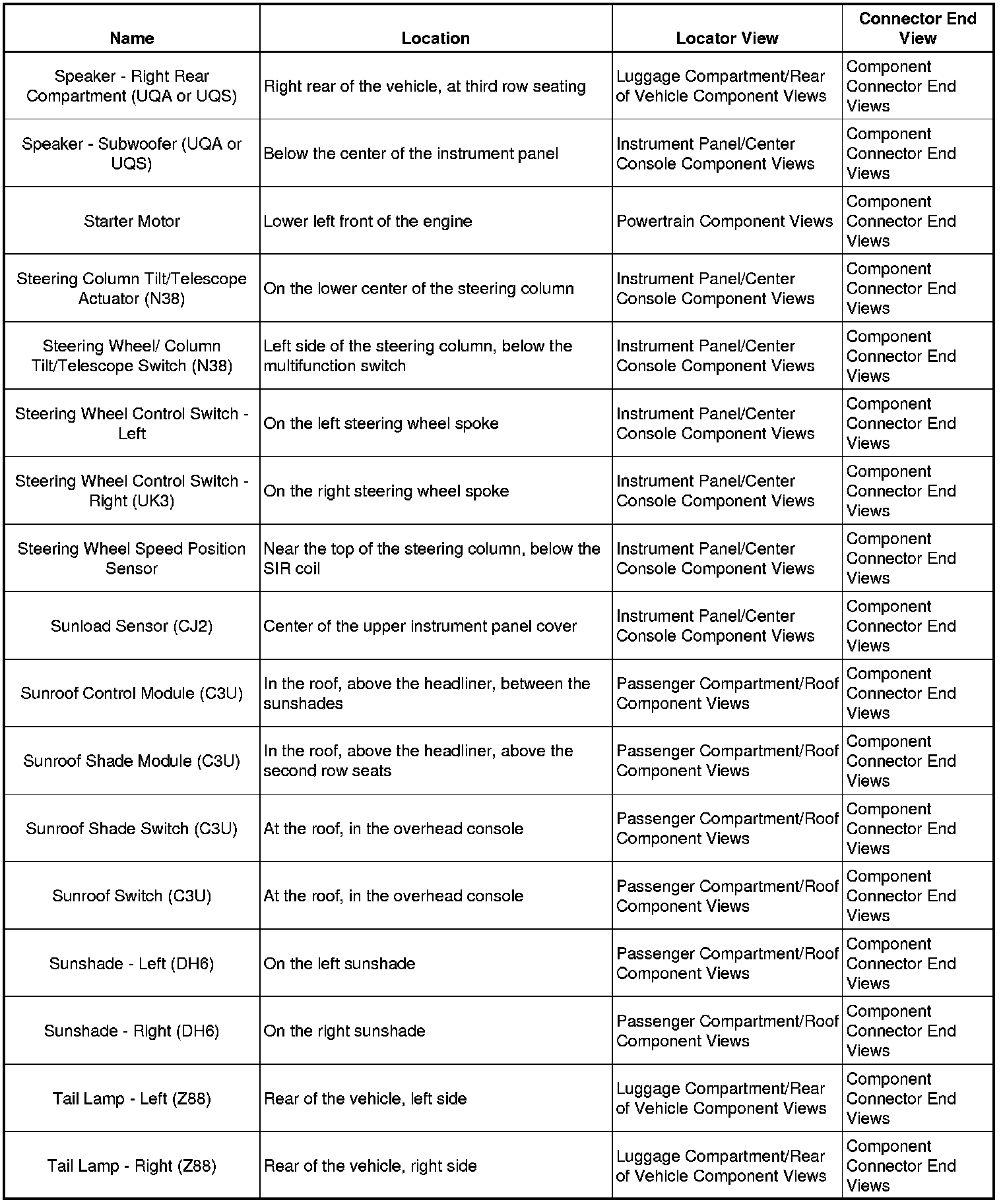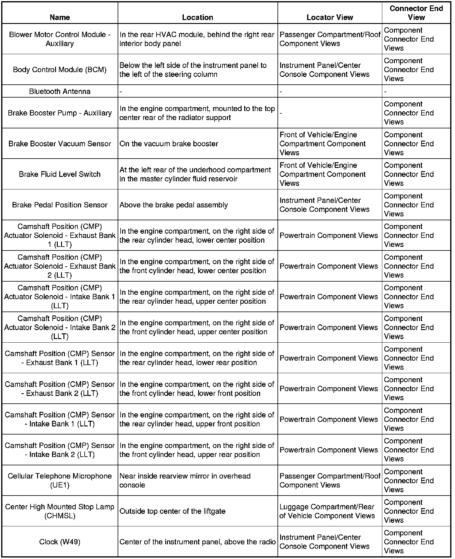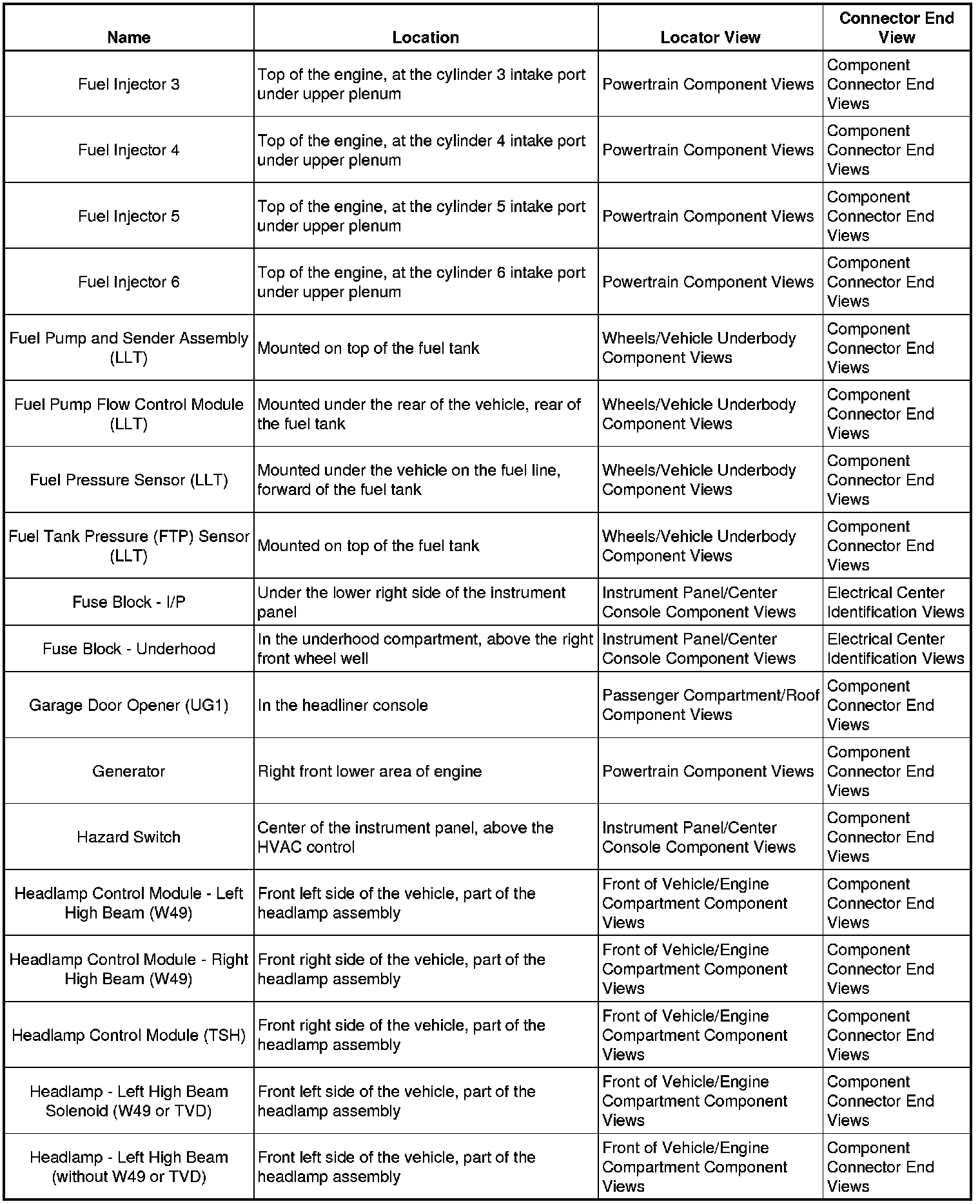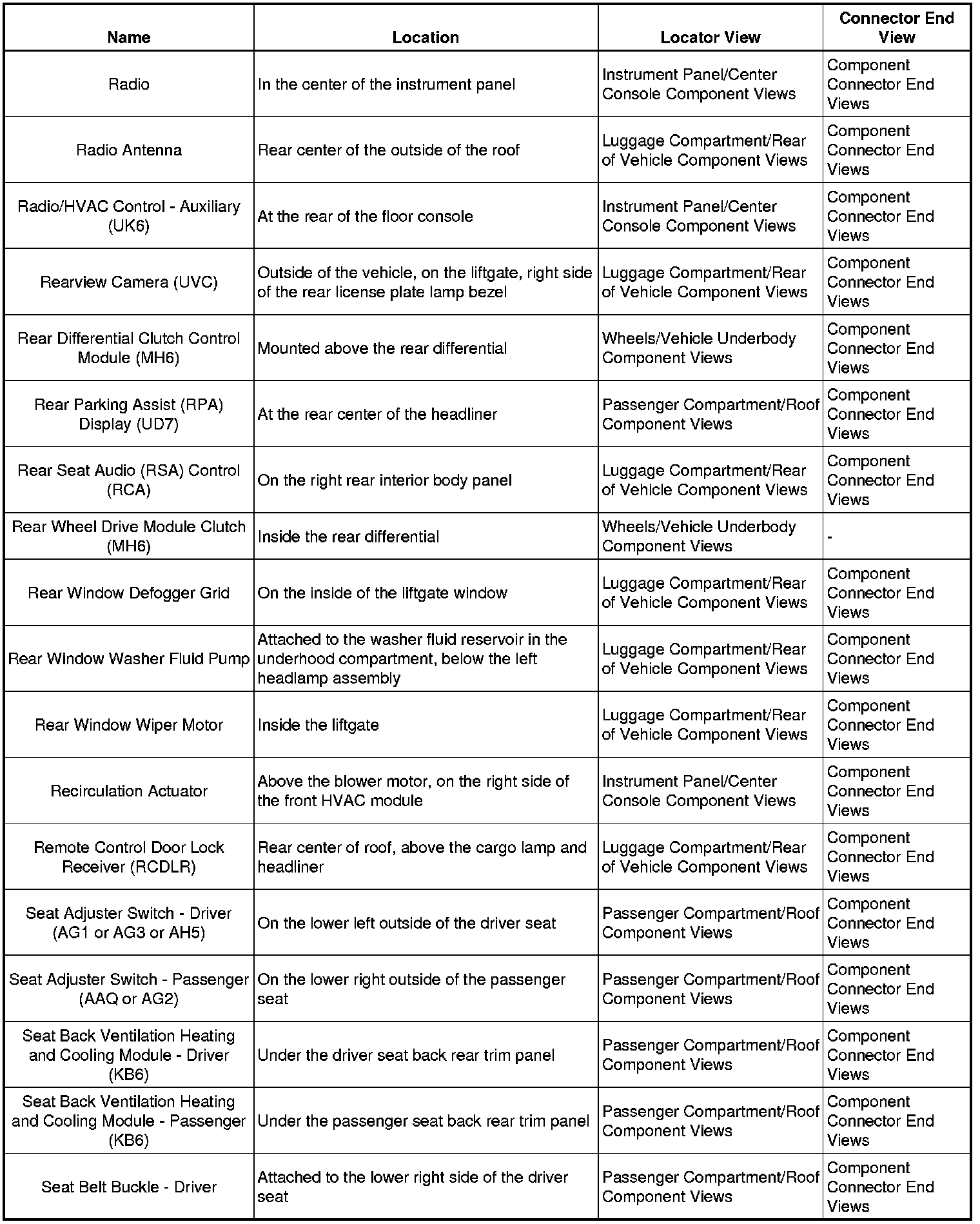 Master Electrical Component List
