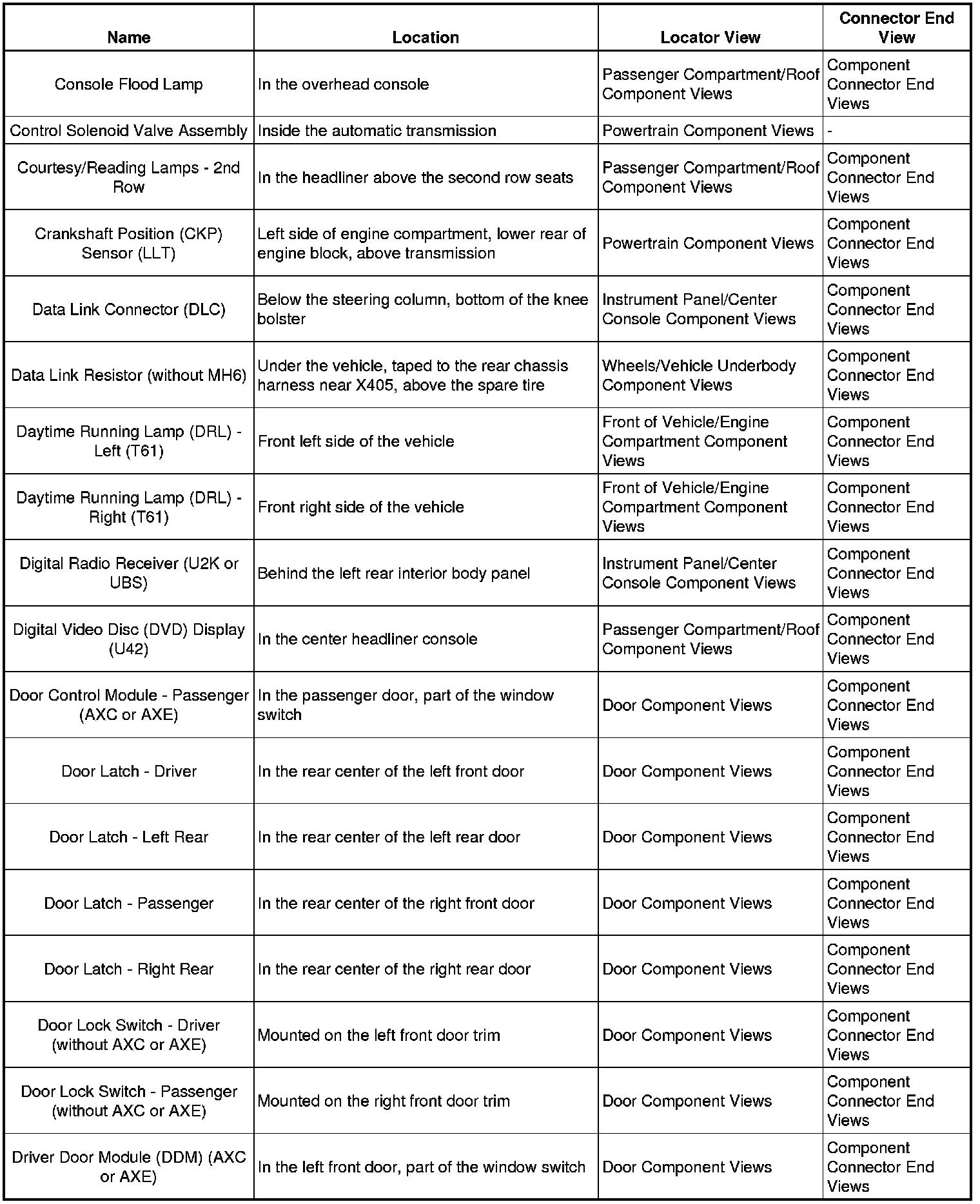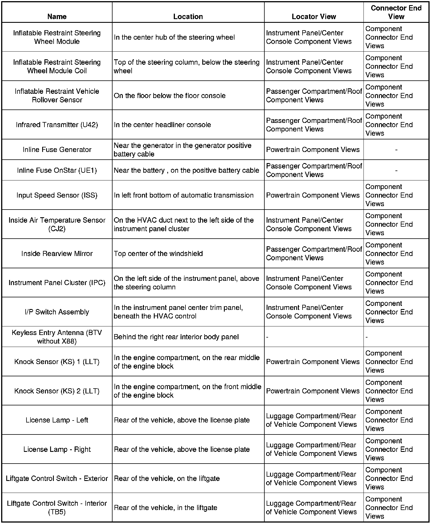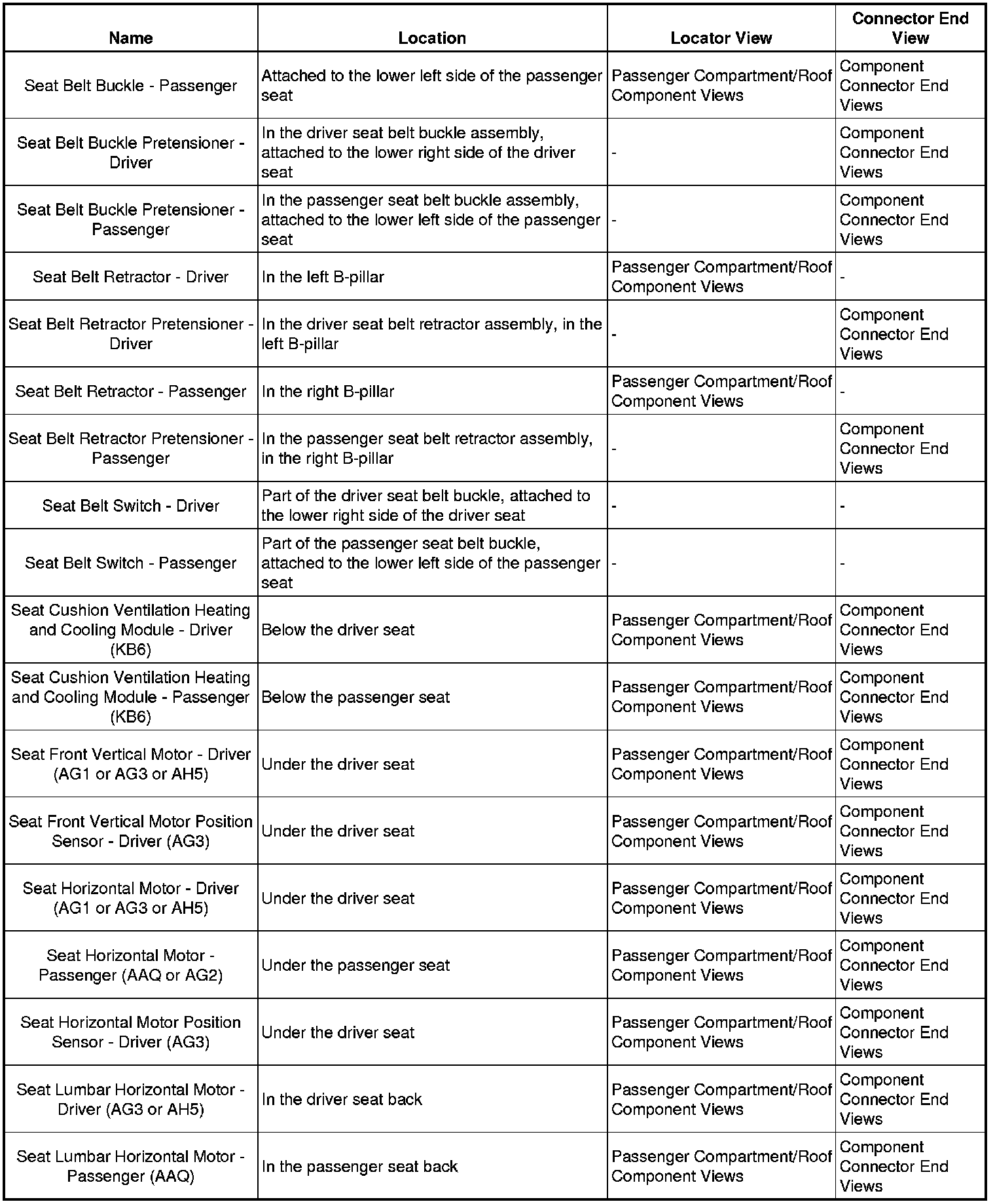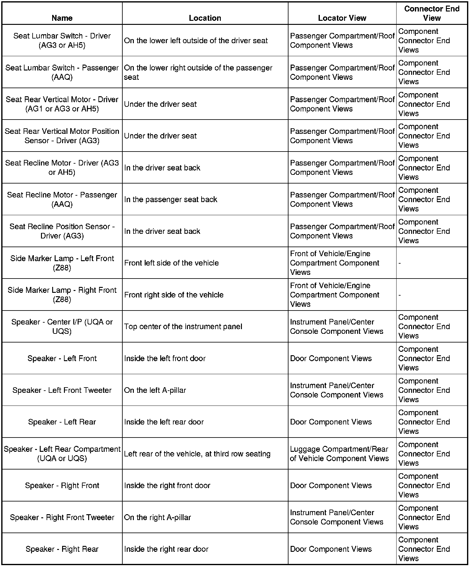 Master Electrical Component List