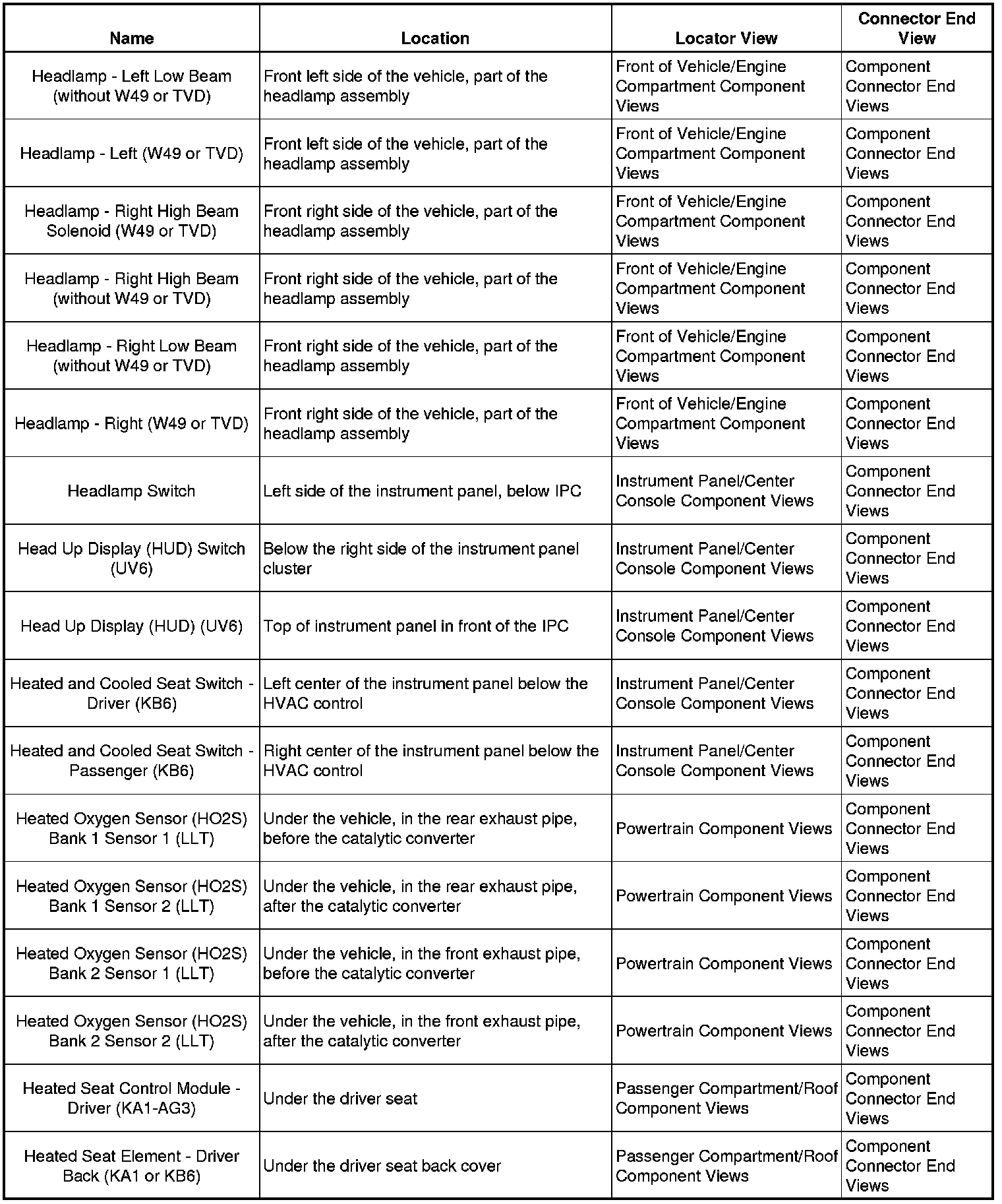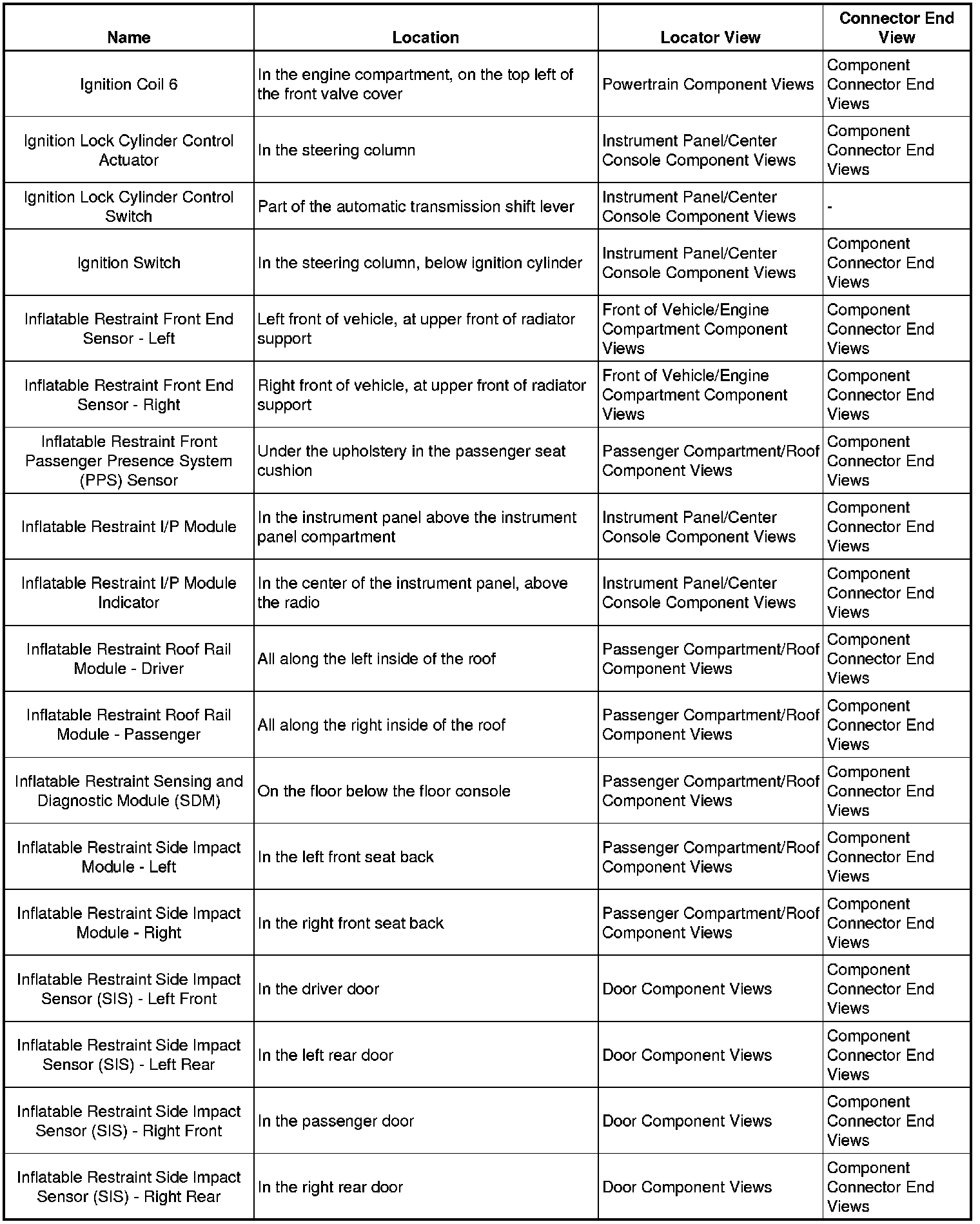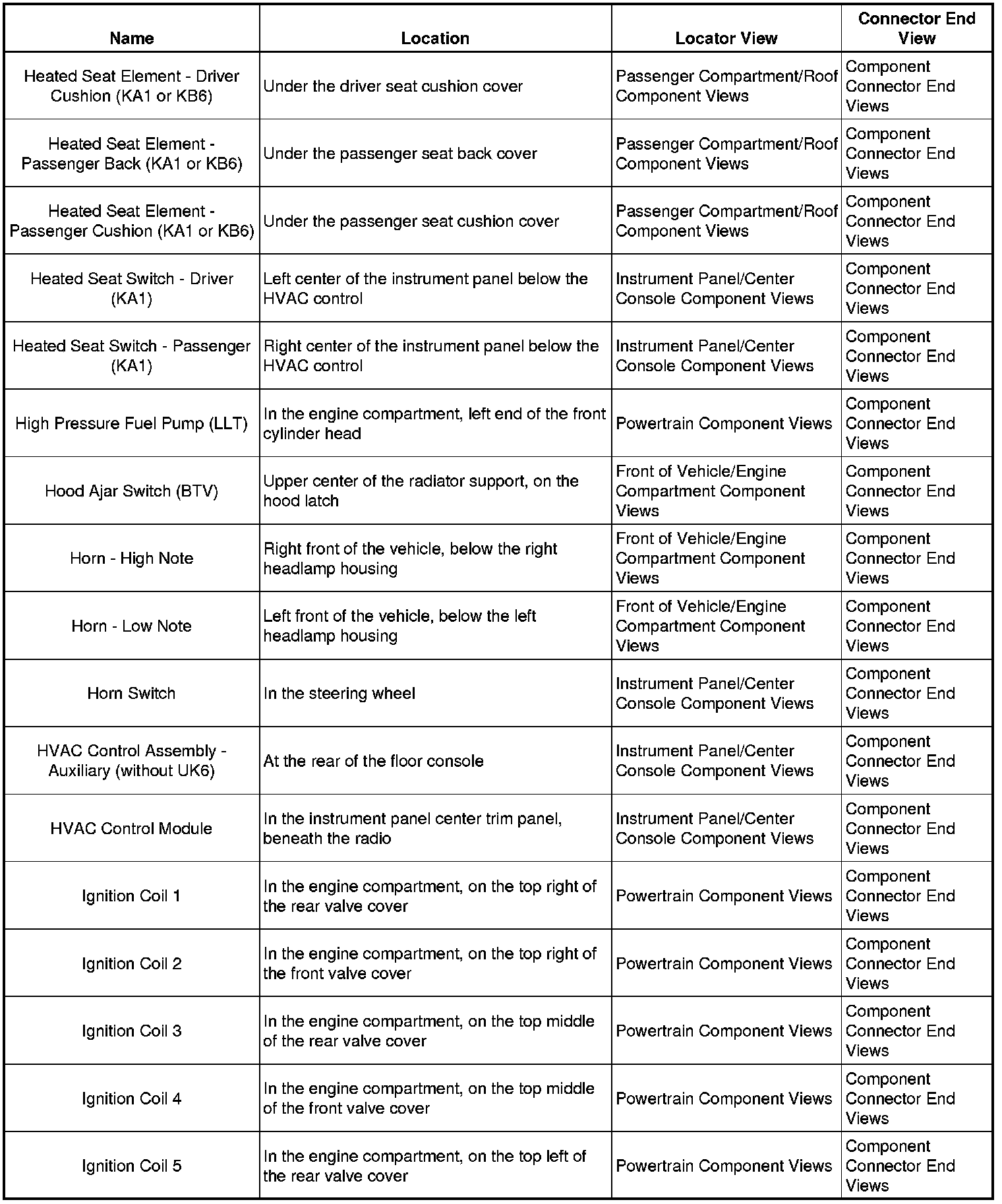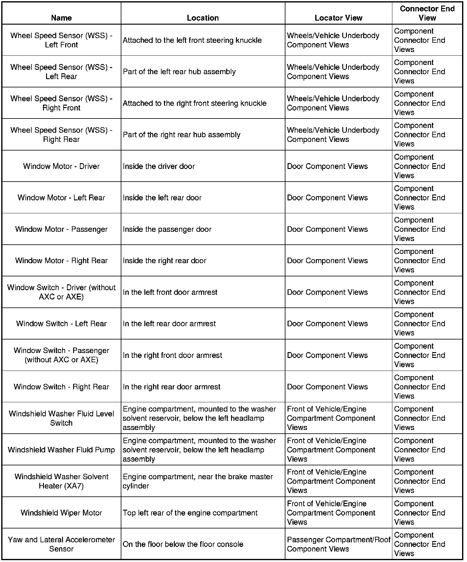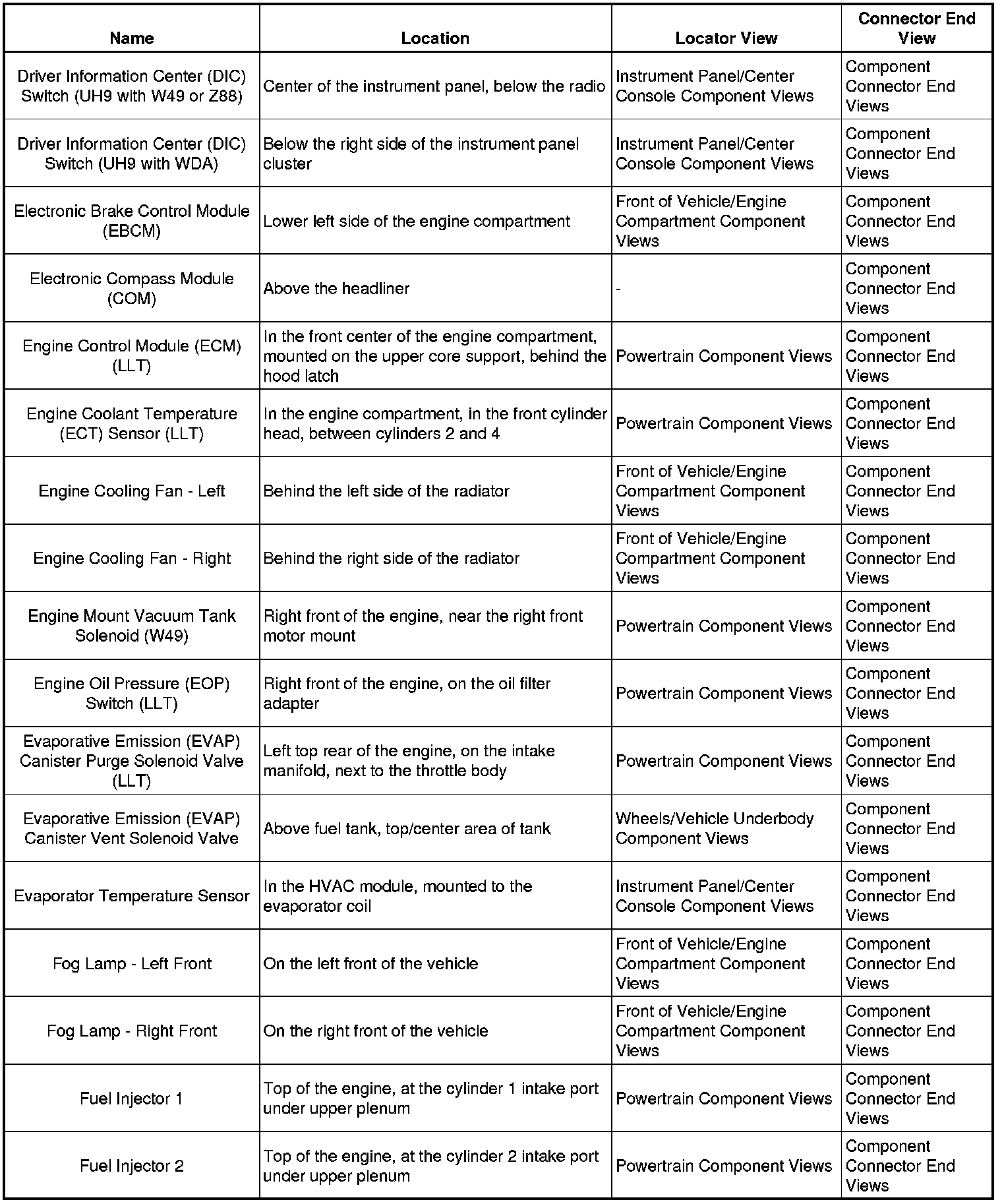 Master Electrical Component List