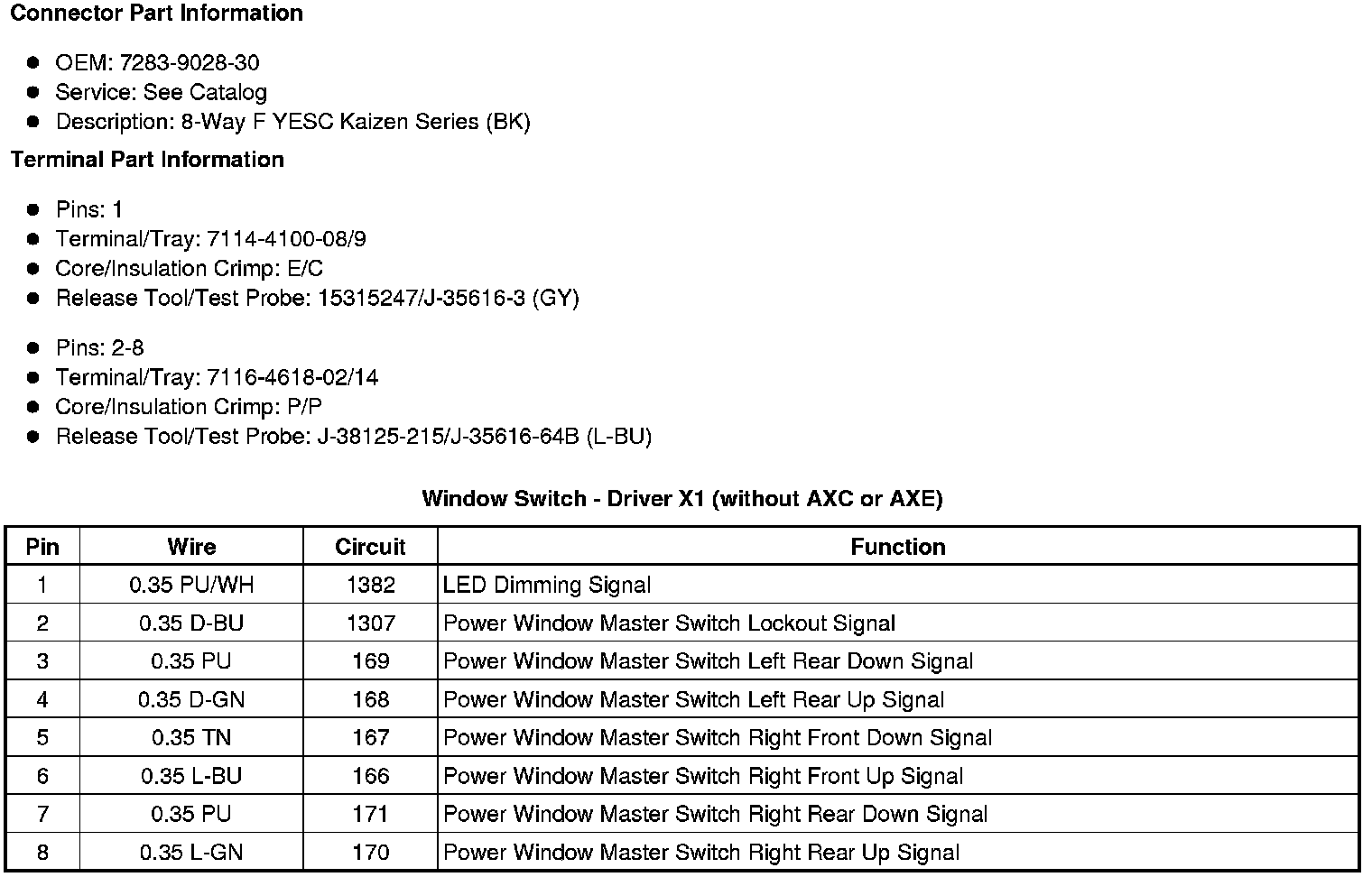 Window Switch - Driver X1 (without AXC or AXE)