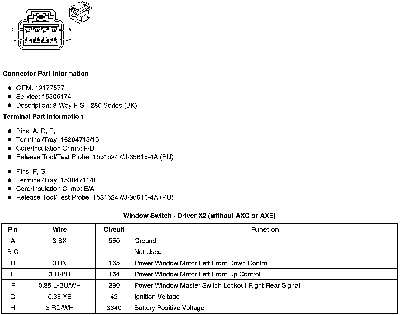 Window Switch - Driver X2 (without AXC or AXE)