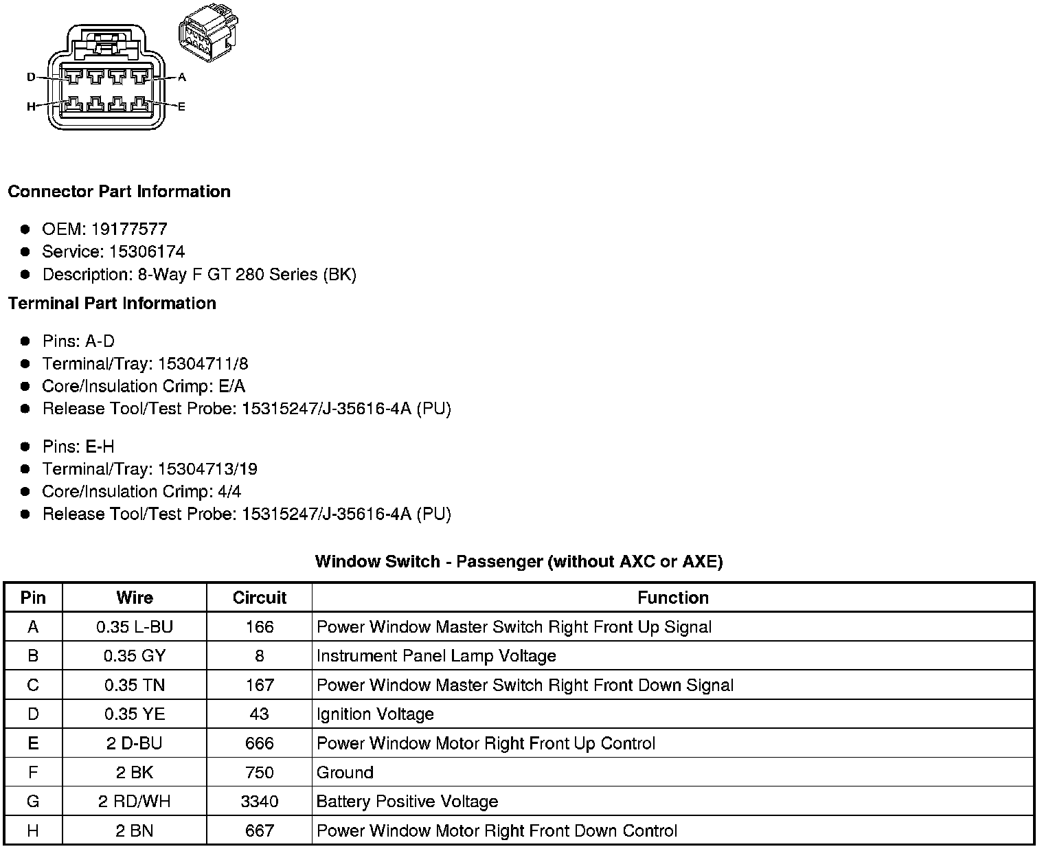 Window Switch - Passenger (without AXC or AXE)