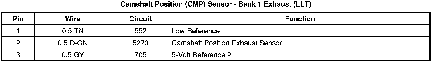 Camshaft Position (CMP) Sensor - Bank 1 Exhaust (LLT)