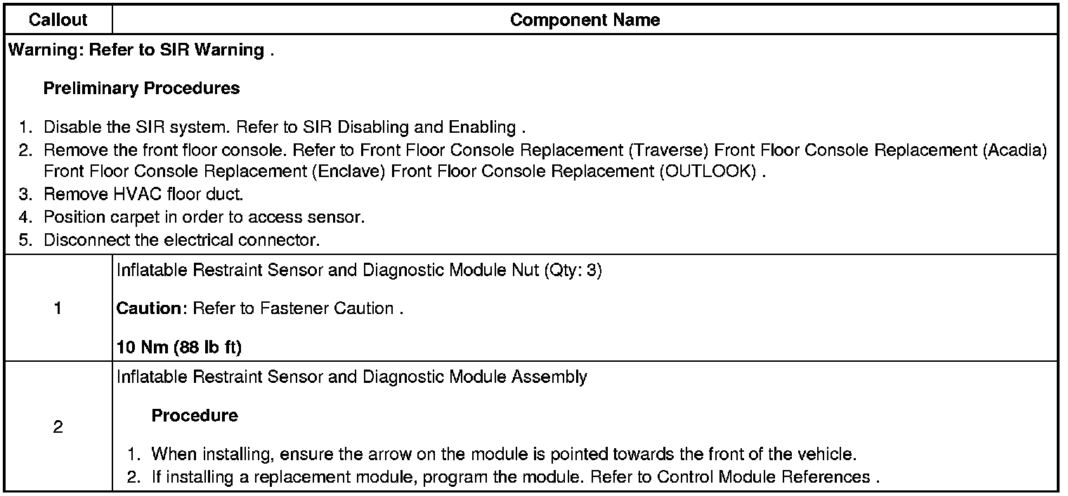 Inflatable Restraint Sensing and Diagnostic Module Replacement