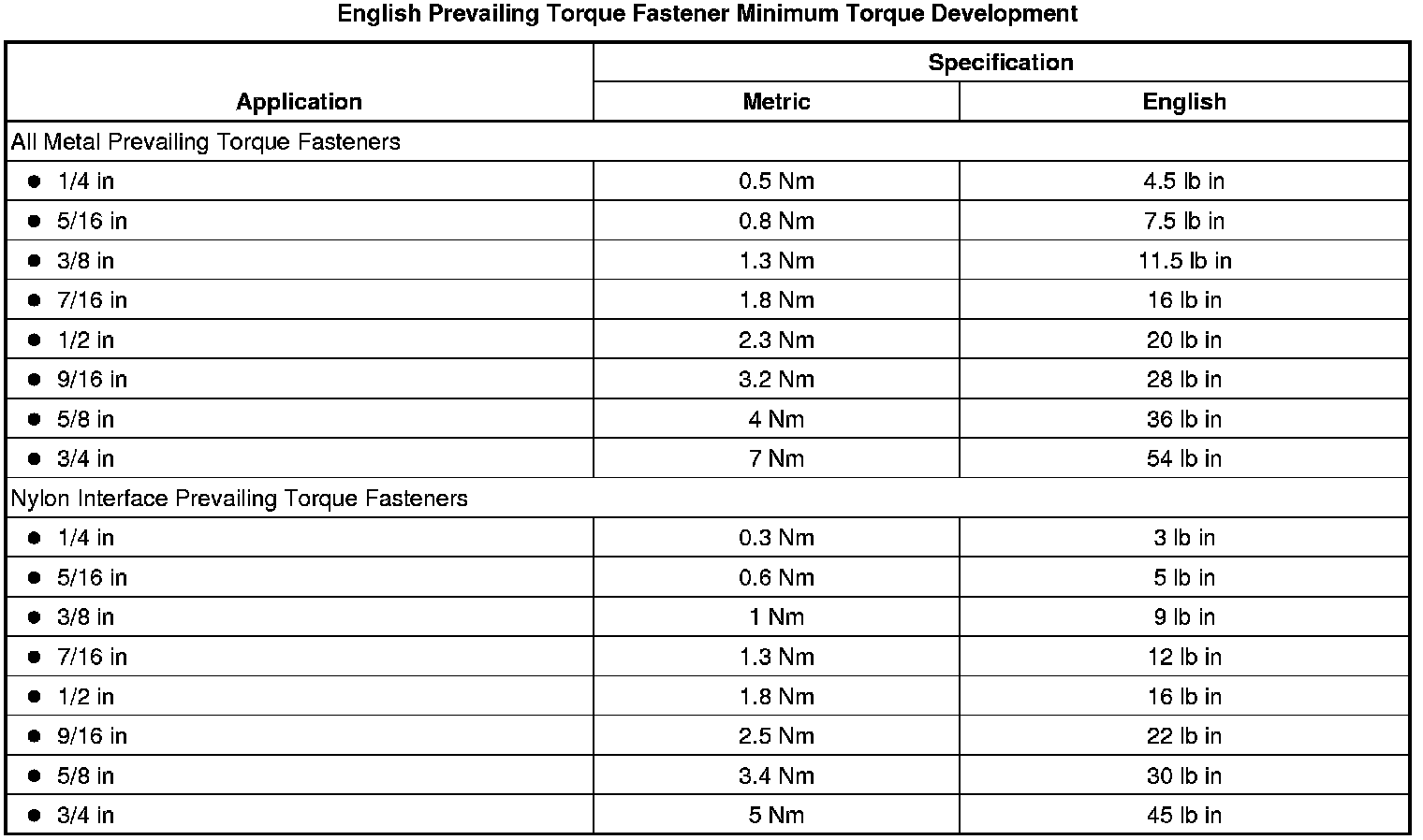 * The fastener develops the specified minimum torque against its counterpart prior to the fastener seating