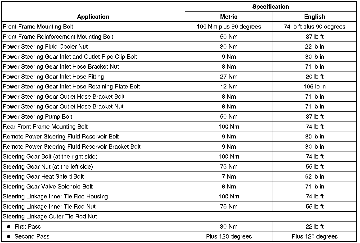 Fastener Tightening Specifications