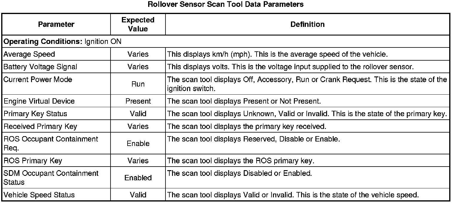 Inflatable Restraint Vehicle Rollover Sensor Scan Tool Information