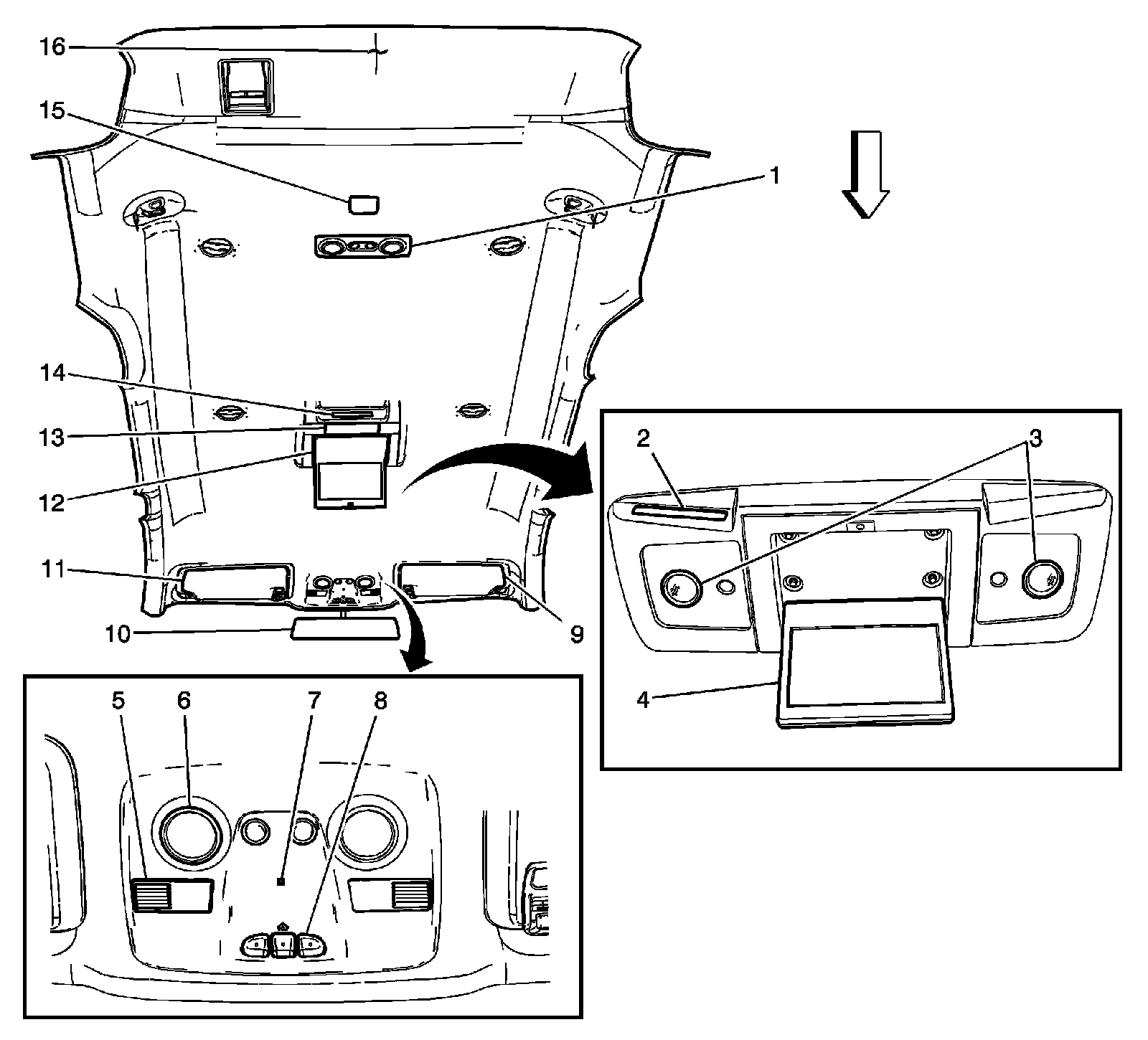 1 - Overhead Console Courtesy/Reading Lamps - Rear