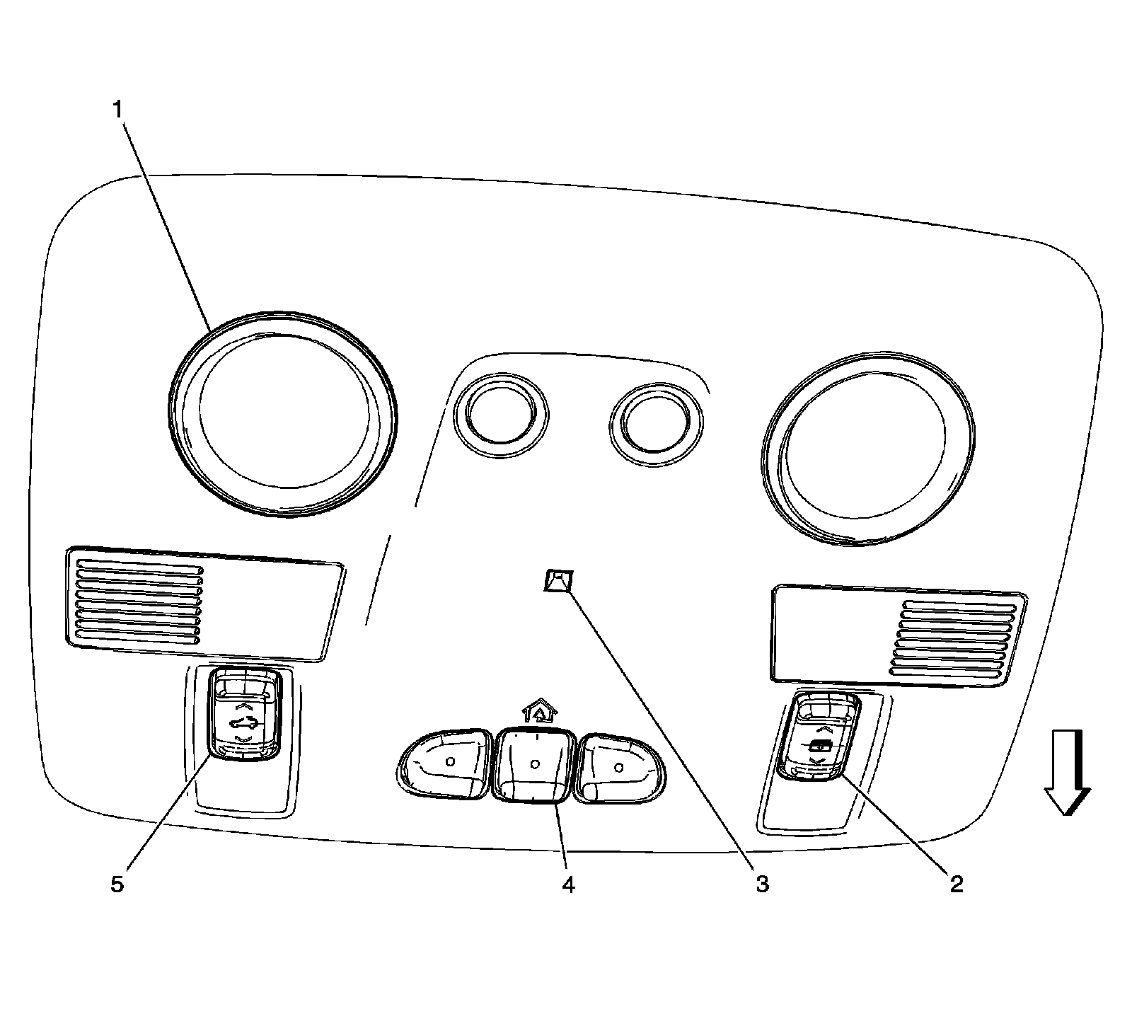 1 - Overhead Console Courtesy/Reading Lamps - Front