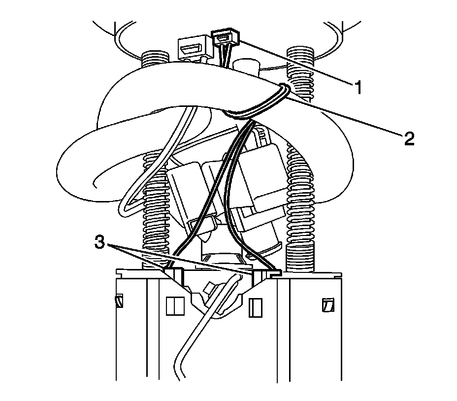 5. Remove the fuel level sensor electrical connector wiring (2) from around the fuel pipe.