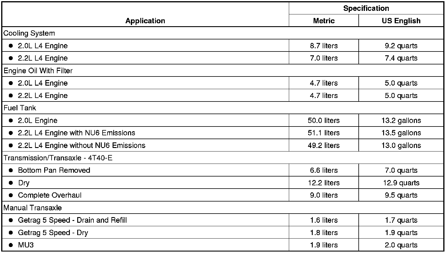 Home >> Chevrolet >> 2010 >> Cobalt L4-2.2L >> Repair and Diagnosis >> Specifications >> Capacity Specifications >> Maintenance