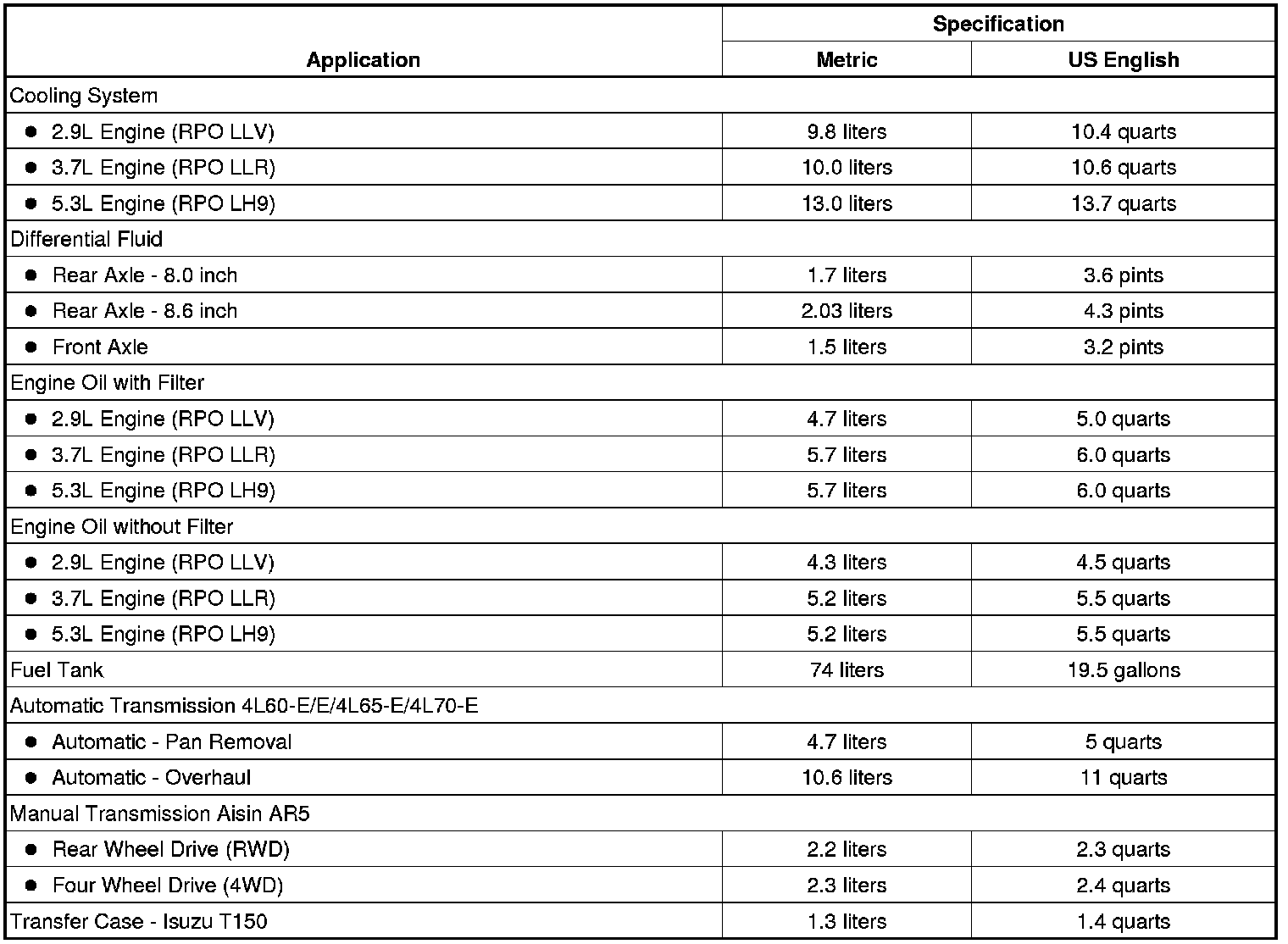 Home >> Chevrolet >> 2010 >> Colorado 2WD L4-2.9L >> Repair and Diagnosis >> Specifications >> Capacity Specifications >> Maintenance