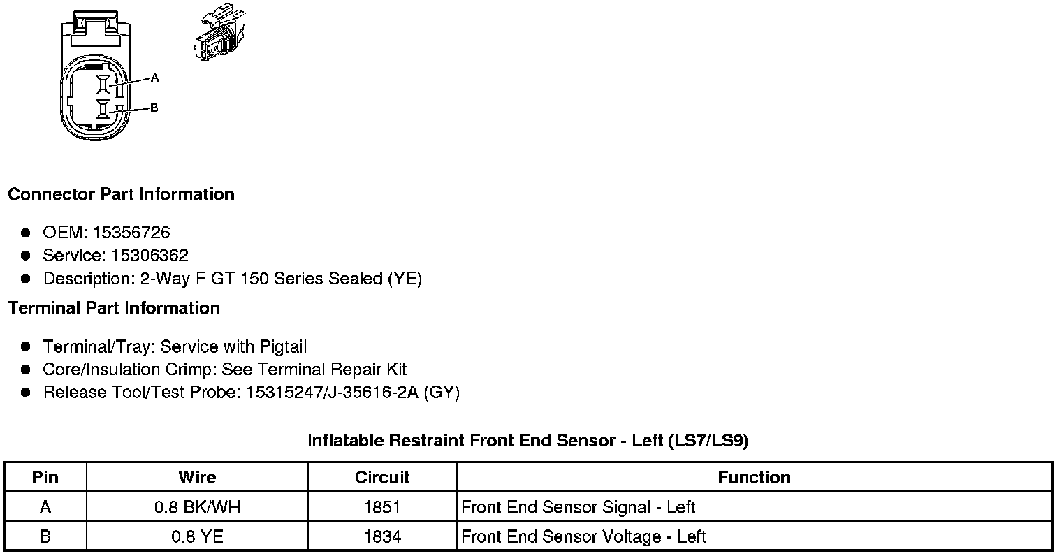 Inflatable Restraint Front End Sensor - Left (LS7/LS9)